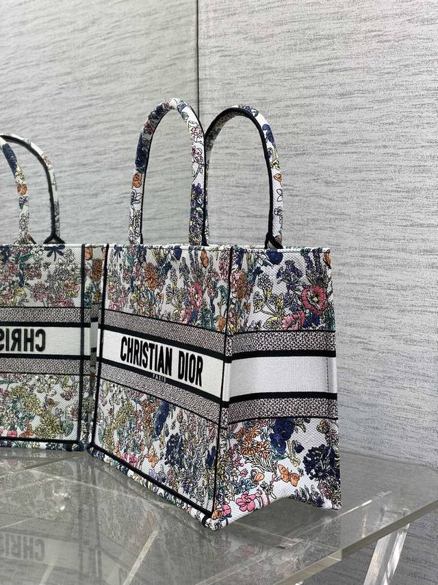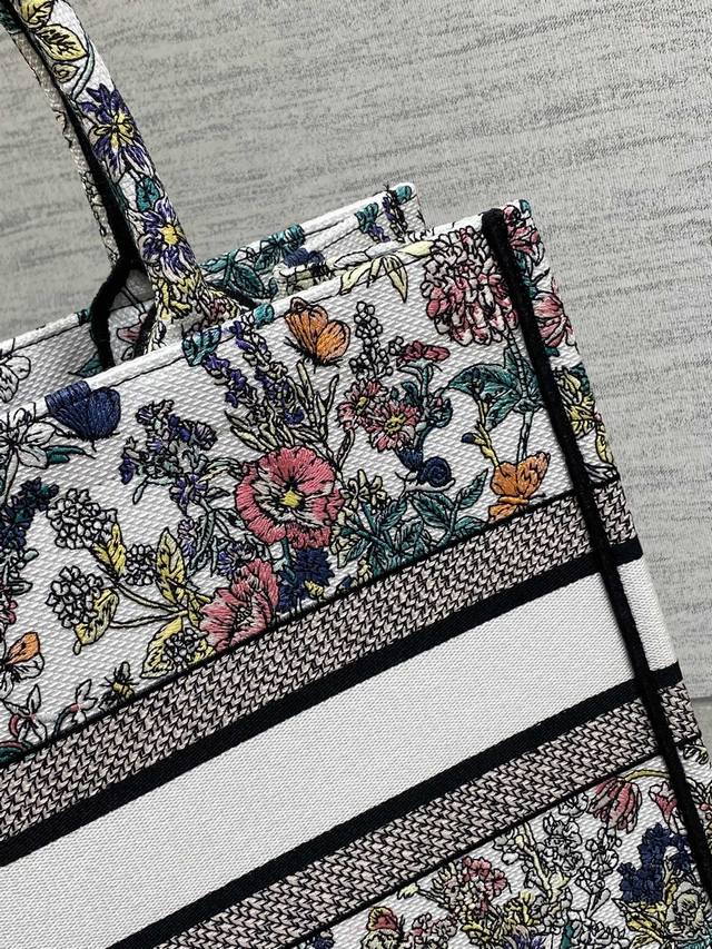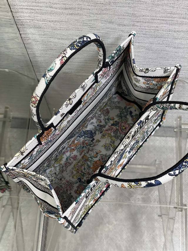 Tote latest spring/summer collection, featuring multi-colored butterfly garden embroidery, exuding summer vibes. Sophisticated color blocking, iconic lettering, and a super-large capacity design. A must-have for fashionistas, perfect for creating stylish looks. The capacity is ample; just throw all your odds and ends in there.