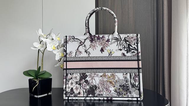 large rose-patterned tote, latest summer series, featuring rose embroidery, exuding summer vibes, sophisticated color blocking, iconic lettering, and a super-large capacity design. A must-have for fashionistas, this tote is perfect for creating stylish looks. It's spacious enough to hold all sorts of items.