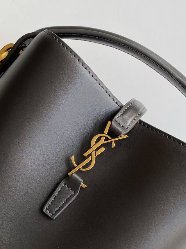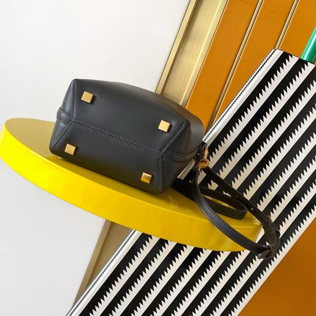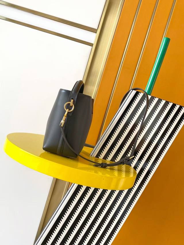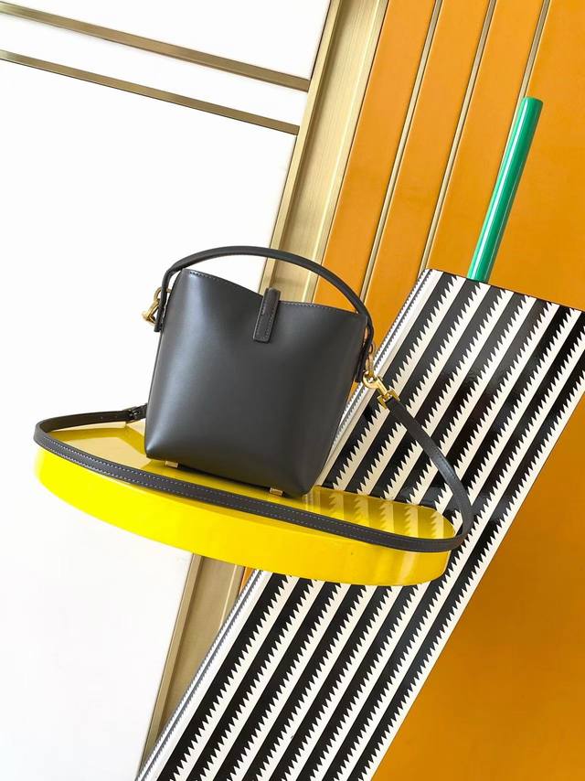Le 37 Mini Glossy Leather Handbag, New Style, Super Cute Bucket Bag with Handle - A brand new bag design, made of Italian calfskin. The bag has a simple, three-dimensional silhouette, looking sturdy without being too sharp. It features a metal stud at the bottom and a classic, iconic metal logo insert clasp, giving it a unique blend of classic elegance and modern chic!