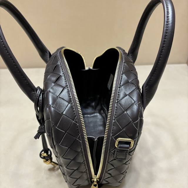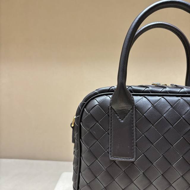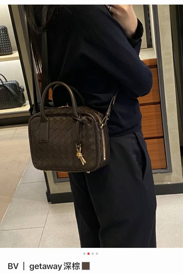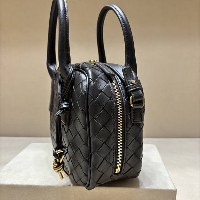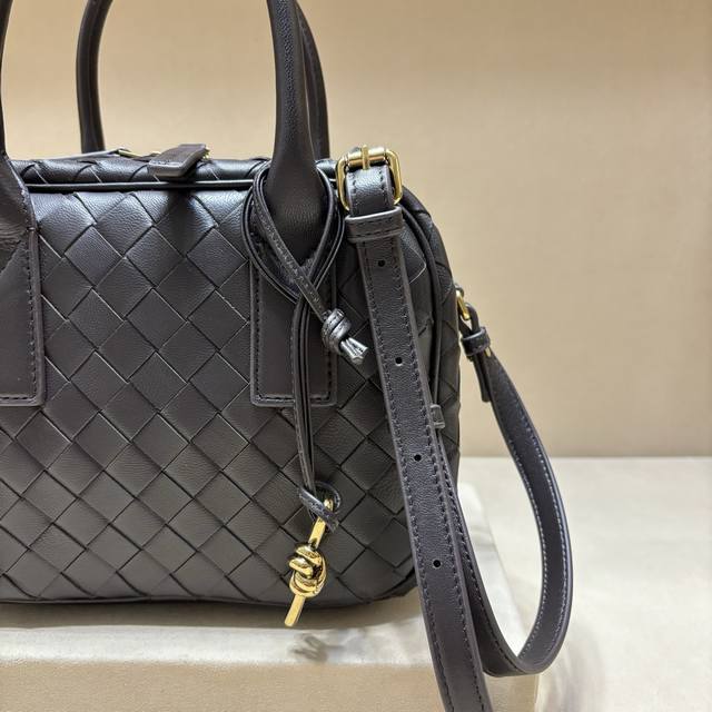 new Getaway bag, cute and adorable briefcase. Small and exquisite, versatile in carrying style, suitable for both ladies and sweet girls. Crafted with lambskin leather using a woven technique, it features an adjustable and detachable shoulder strap, bottom studs to prevent leather scratches, and a brass rope knot charm. Retro and soft, the bag is lightweight yet spacious, highly practical, and incredibly cute