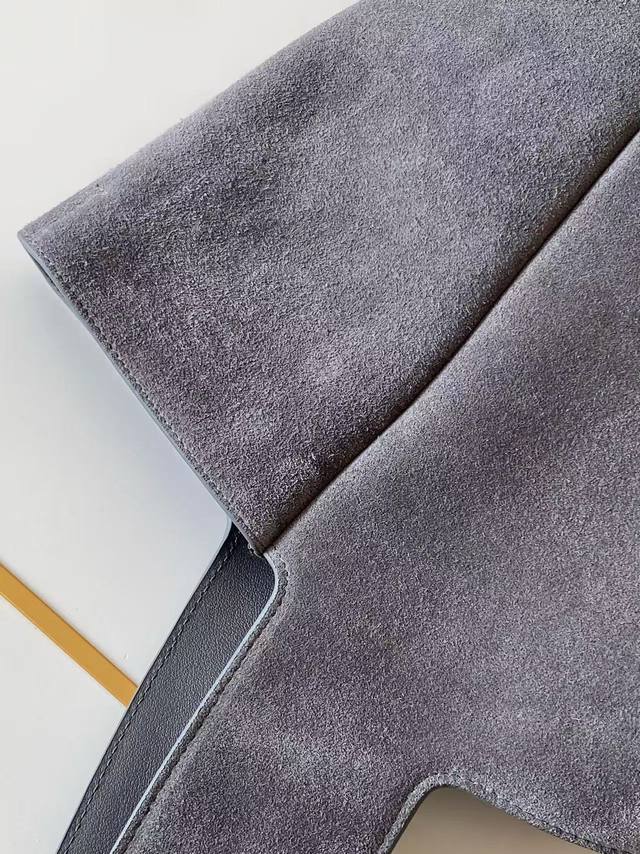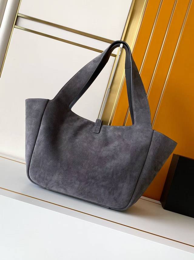 New Bea Handbag Horizontal Tote Version, with Leather Buckle Closure and Le Cassandre Trim. Spacious with a matching suede lining, featuring a main compartment and an interior zip pocket. Internal drawstring design; sides can be folded or unfolded as needed. Soft deerskin Bea's exclusive rare and luxurious texture; the simple appearance combined with its softness creates a relaxed and effortless look. The sides can also be folded, offering two configurations.