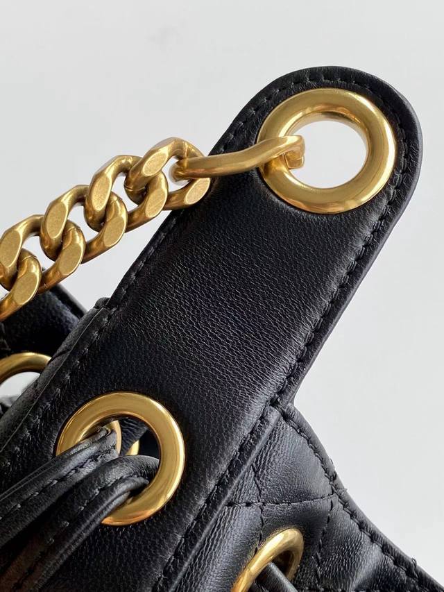 original leather mini bucket bag, brand new arrival! It's an adorable little bag you can hold in your hand! The entire bag is meticulously crafted from original lambskin, soft and comfortable to the touch! The vintage chain paired with a small leather shoulder strap makes it super comfortable to carry! The diamond-quilted pattern is quite distinctive, and the mini version is especially cute, hitting the hearts of small bag lovers! No need to worry about the capacity, it's definitely spacious enough, and the elastic closure makes it easy to organize. Small bag lovers absolutely shouldn't miss this cutie!
