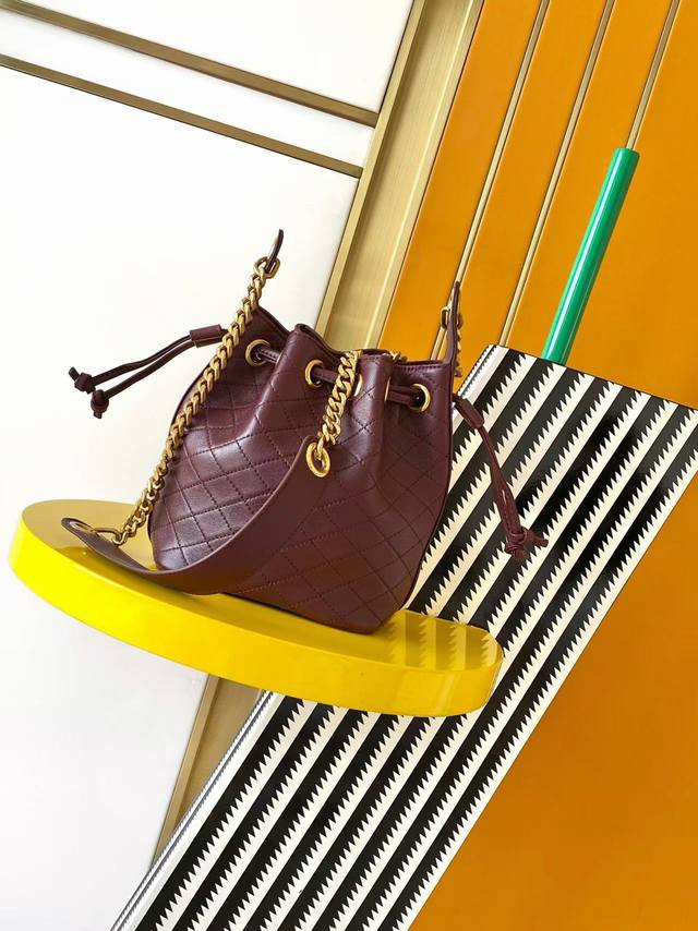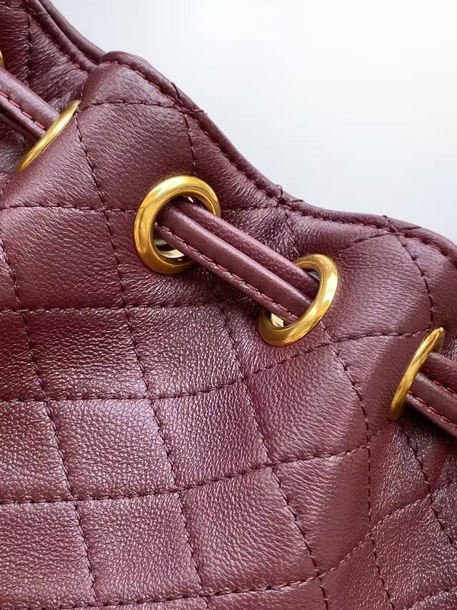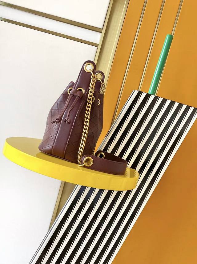 original leather mini bucket bag, brand new arrival! It's an adorable little bag you can hold in your hand! The entire bag is meticulously crafted from original lambskin, soft and comfortable to the touch! The vintage chain paired with a small leather shoulder strap makes it super comfortable to carry! The diamond-quilted pattern is quite distinctive, and the mini version is especially cute, hitting the hearts of small bag lovers! No need to worry about the capacity, it's definitely spacious enough, and the elastic closure makes it easy to organize. Small bag lovers absolutely shouldn't miss this cutie!