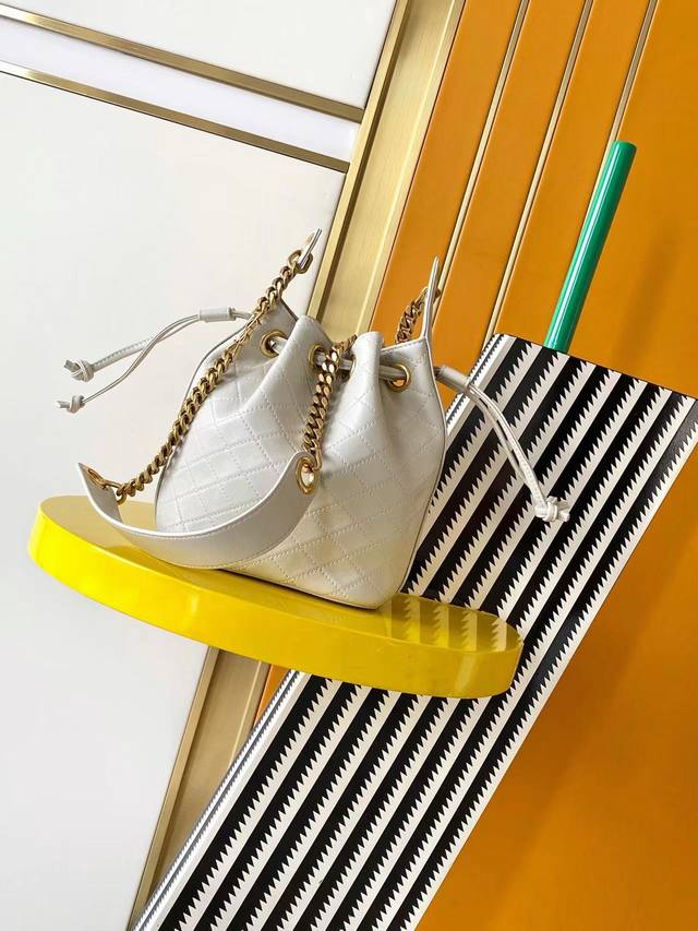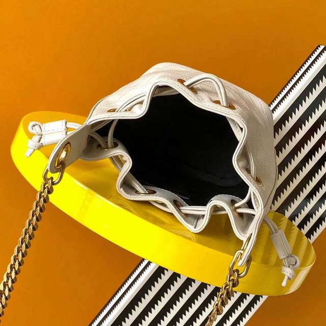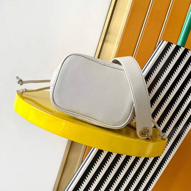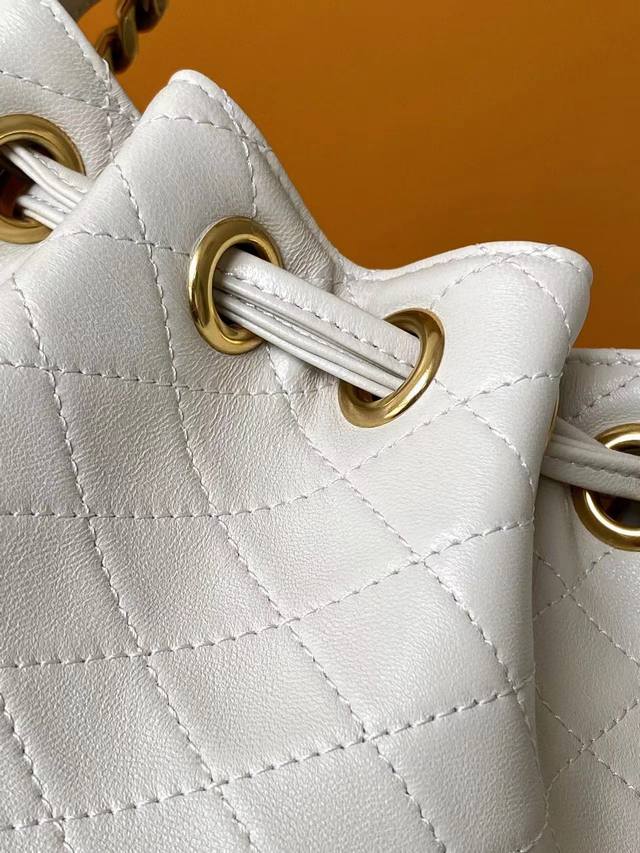 original leather mini bucket bag, brand new arrival! It's an adorable little bag you can hold in your hand! The entire bag is meticulously crafted from original lambskin, soft and comfortable to the touch! The vintage chain paired with a small leather shoulder strap makes it super comfortable to carry! The diamond-quilted pattern is quite distinctive, and the mini version is especially cute, hitting the hearts of small bag lovers! No need to worry about the capacity, it's definitely spacious enough, and the elastic closure makes it easy to organize. Small bag lovers absolutely shouldn't miss this cutie!