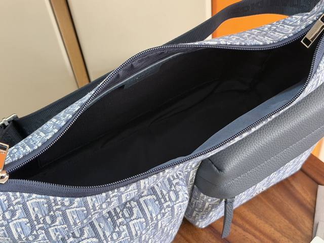 Rider Soft dumpling bag is a new addition to the Fall 2025 menswear collection, combining practicality with stylish design. Crafted from materials including blue Oblique printed fabric, it's adorned with tonal grained calfskin details and the Dior logo for added sophistication. It features a zippered compartment, two front zippered pockets, and two side slip pockets for storing various everyday essentials. The practical medium size comes with an adjustable shoulder strap for shoulder or crossbody wear. Model: 93921 Light Blue Dimensions: 36 x 30.5 x 14.5 cm (Length x Height x Width) Main compartment can hold one 13-inch laptop, A4 documents, and one tablet. Fabric: Fabric Lining: Fabric zipper Main compartment interior slip pocket 2 front zip pockets 2 side slip pockets Adjustable Christian Dior logo nylon jacquard shoulder strap Front adorned with metallic-coated copper alloy Dior logo Interior adorned with Dior embossed logo Includes dust bag Made in Italy