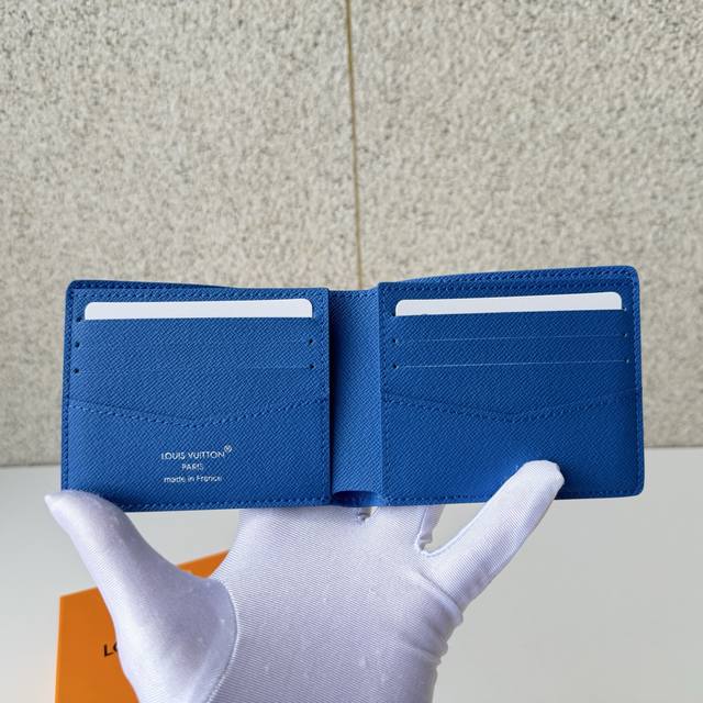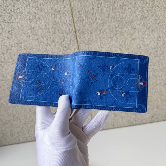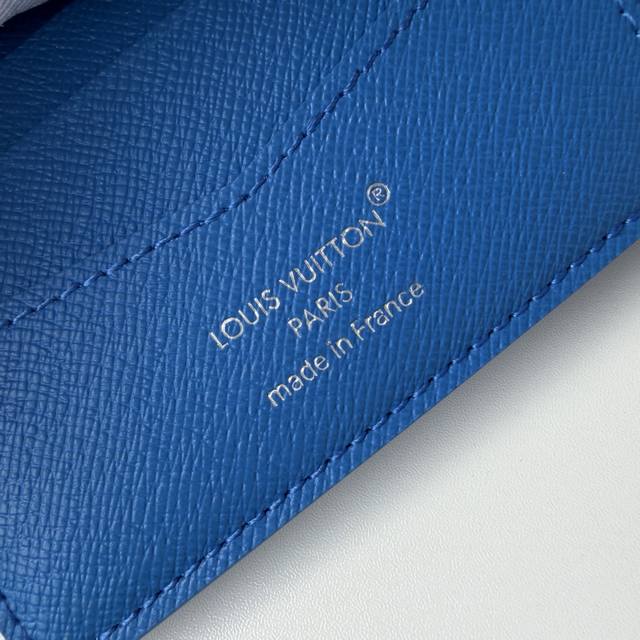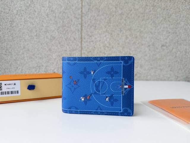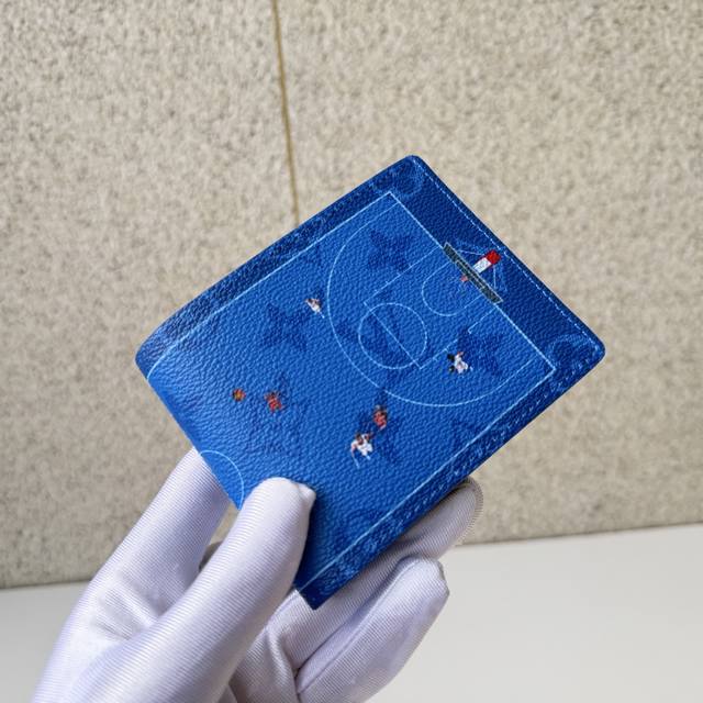 Top-Tier Original M26801 Blue "Portefeuille Slender" using Monogram canvas. A miniature moving scene photographed from the air is depicted through a playful print. The understated monogram blends seamlessly with the background color, highlighting the lithographic image. Dimensions: 11 x 8.5 x 2 cm.
