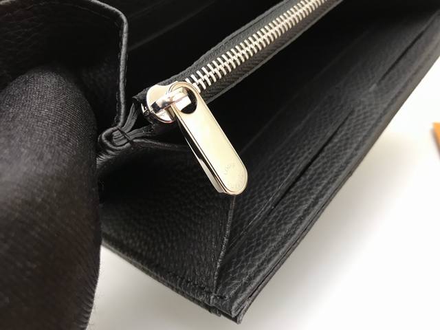 Top-Tier Original M60143 Black Delicate Perforated Leather with Monogram Pattern, showcasing the elegant style of the Iris wallet. The gracefully rounded flap conceals a spacious compartment, a zippered coin pocket, and multiple card slots. Dimensions: 19.0 x 12.0 x 2.0 cm.