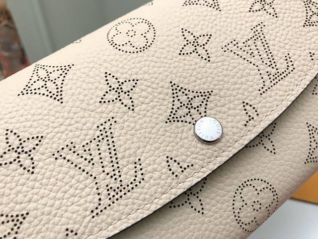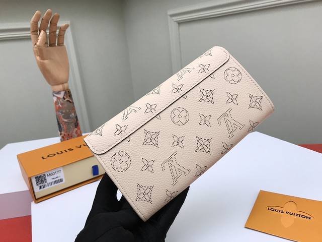 Top-Tier Original M60177 White delicate perforations depict the Monogram pattern on the soft calfskin surface, reflecting the elegant style of the Iris wallet. The gently rounded flap conceals a spacious compartment, a zippered coin pocket, and multiple card slots. Dimensions: 19.0 x 12.0 x 2.0 cm.