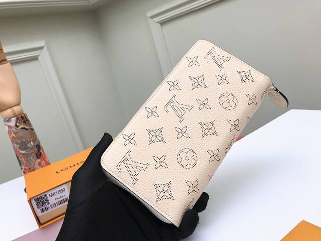 Top-Tier Original M61869 Beige. As one of the most representative multi-functional Louis Vuitton leather goods, this Zippy wallet is made of soft and finely grained Mahina leather, decorated with exquisite Monogram perforations, and features a credit card slot, upgrading both practicality and style. It can be placed in a bag or carried as a mini handbag! Dimensions: 19.5 x 10.5 x 2.5 cm.