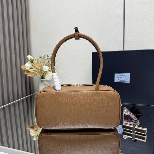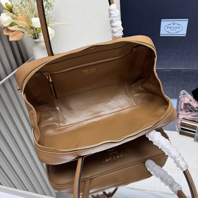Top-Tier Original New 1Bb126 Lychee Grain Full Leather Long Handle Shoulder Bag, Zippered Handbag. Elegant geometric lines outline the exquisite silhouette of this handbag, flowing gracefully and exuding a modern feel. The structured bag body is crafted from leather with superb craftsmanship, featuring meticulous details that showcase the brand's dedication to craftsmanship. Shiny metal hardware and the iconic enamel metal triangle logo add subtle details. It includes an interior zip pocket. Dimensions: 29