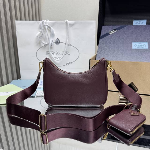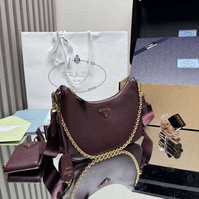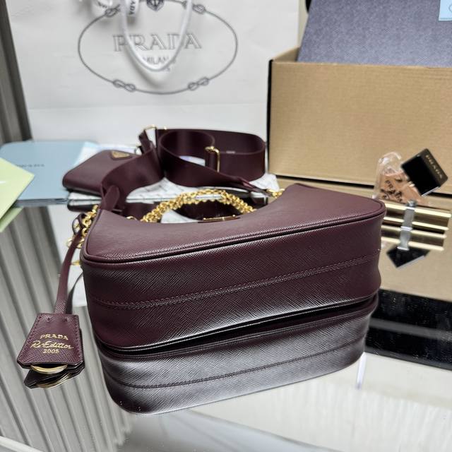 Top-Tier Original New Version Hot-Selling Upgraded Baokuanqnylon Hobo Handbag/Underarm Bag 1Bh204 Original Cross-Grain Detachable Pico Re-Edition 2005 Saffiano Leather Nameplate with Key Ring Detachable Adjustable Logo Fabric Shoulder Strap Detachable Zippered Leather Pouch Detachable Metal Chain Shoulder Strap Top Zipper Nylon Lining Enameled Triangular Metal Logo Dimensions: Length 22 x Height 18 x Width 6.5 cm!