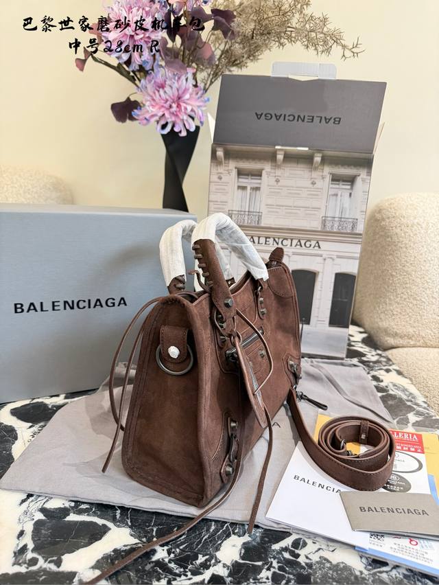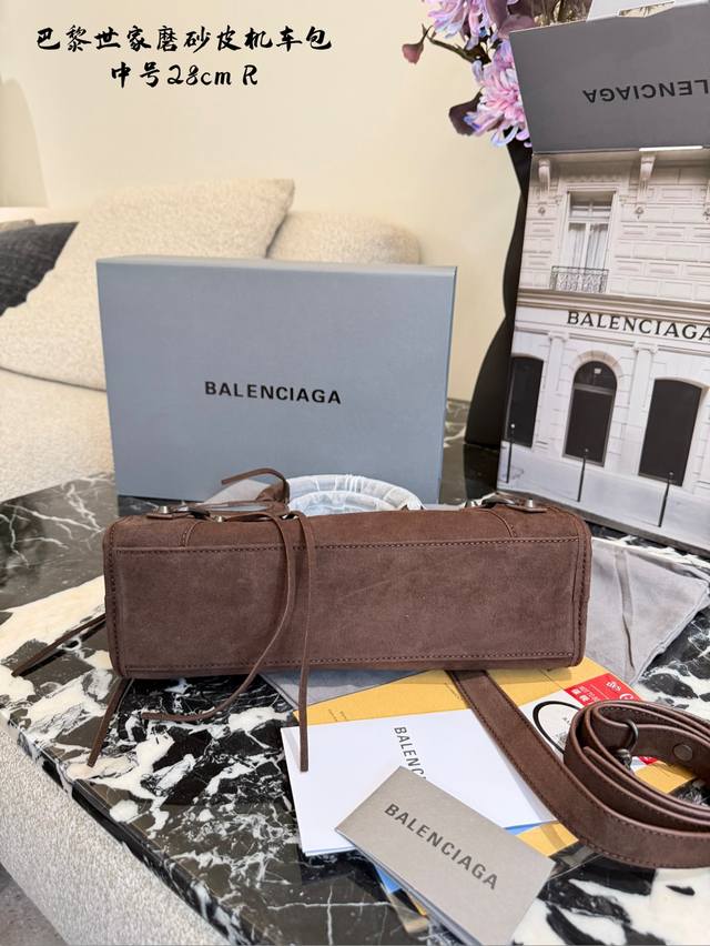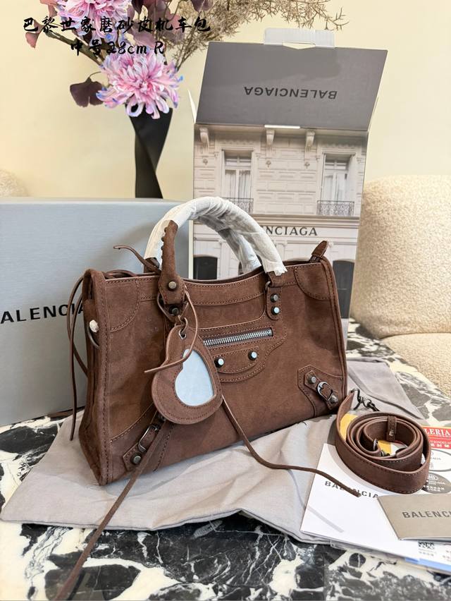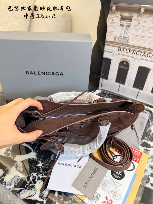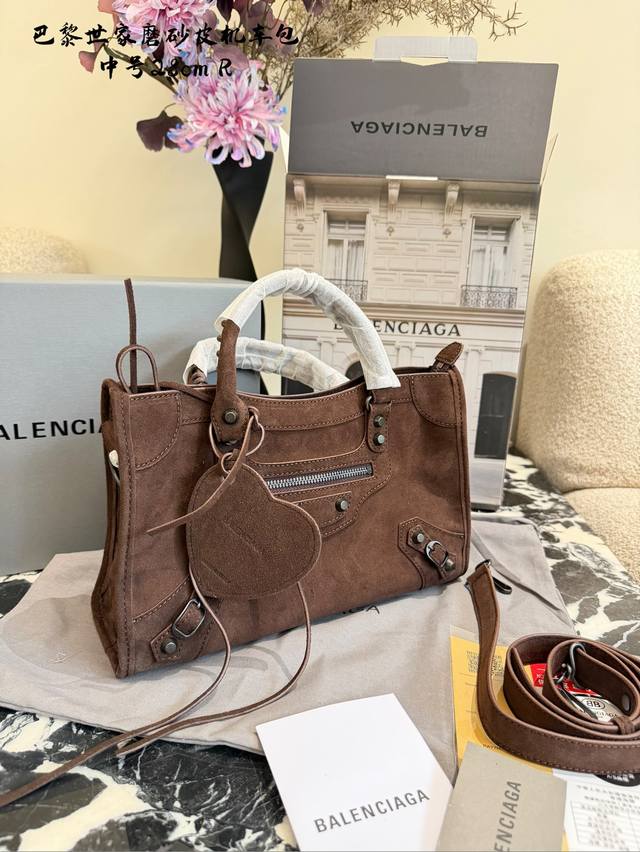 Balenciaga's suede motorcycle bag is so stylish! Wearing it instantly gives you the look of a leading lady in an American TV series [Wow!]. The leather feels smooth and supple to the touch, and most importantly, it's incredibly lightweight and can easily hold an umbrella, water bottle, etc. The shoulder strap is adjustable to fit different heights and outfits. Perfect for everyday outings or work, it's versatile, fashionable, and both practical and stylish. 30cm double-box.