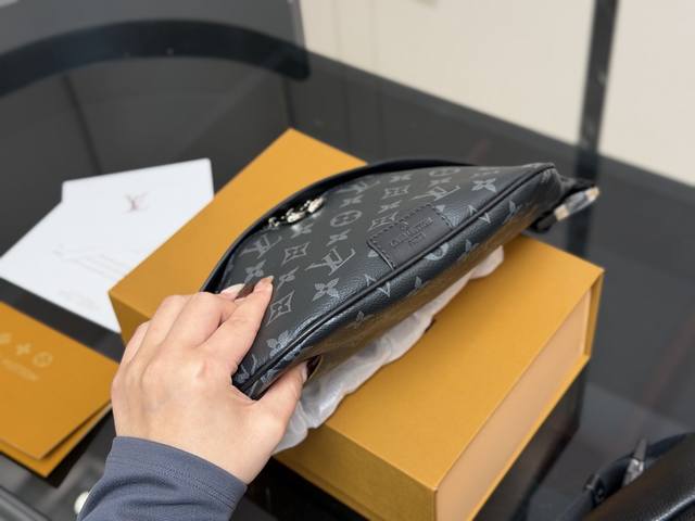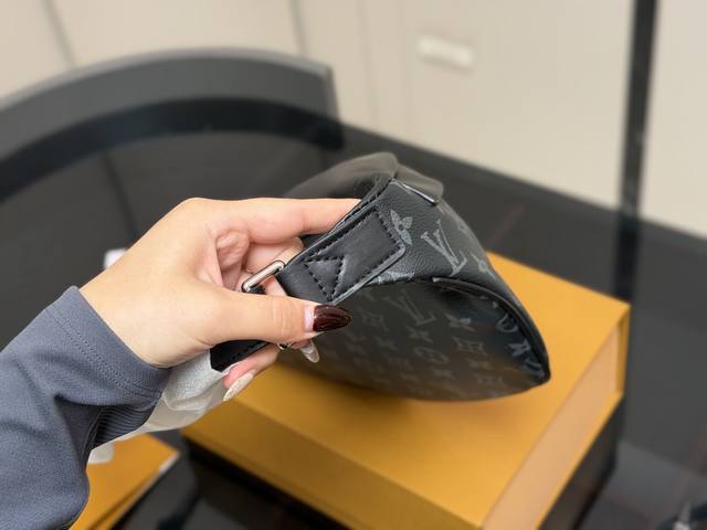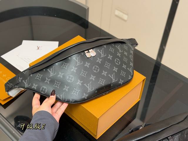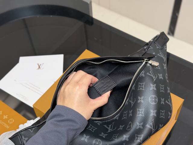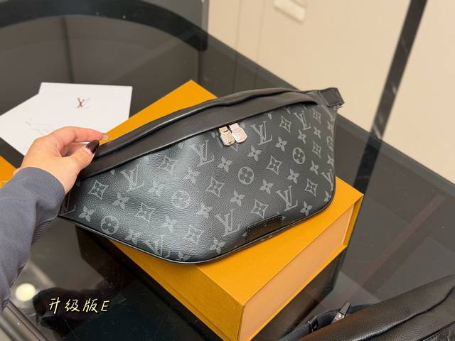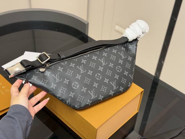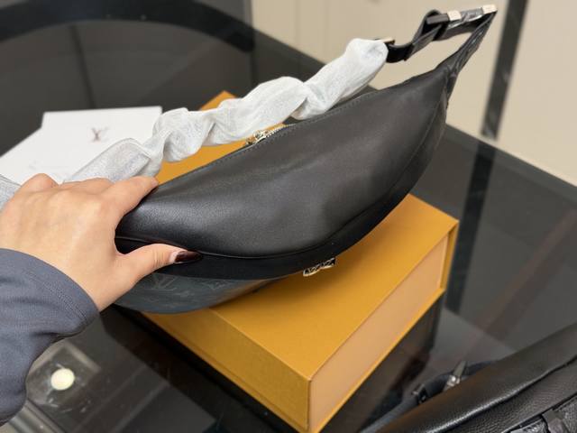 Black floral print, black leather, with folding box, LV waist bag. Can be used as a chest bag, shoulder bag, or crossbody bag. Cotton canvas lining, hardware + original leather! Size: 29.16cm
