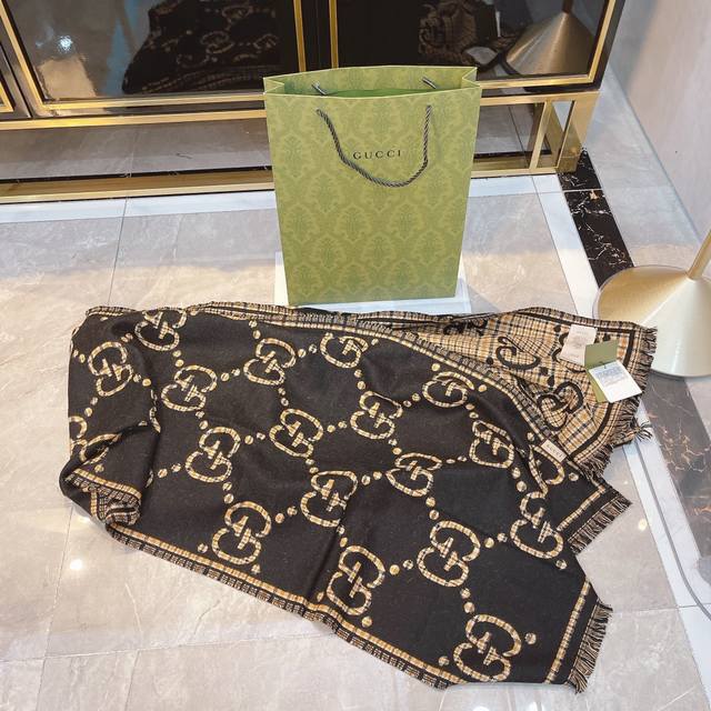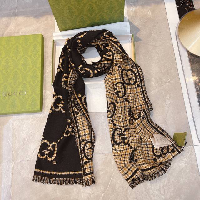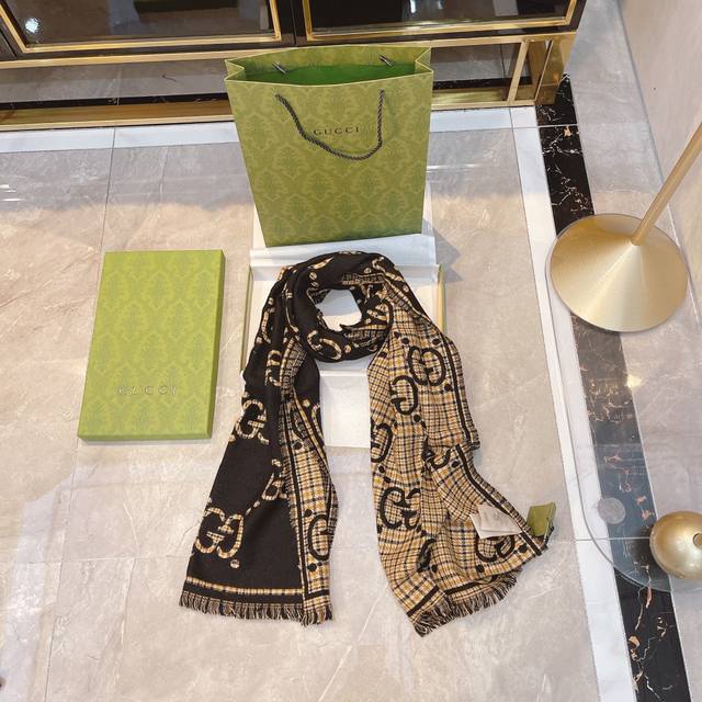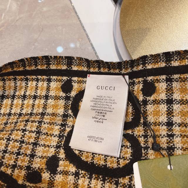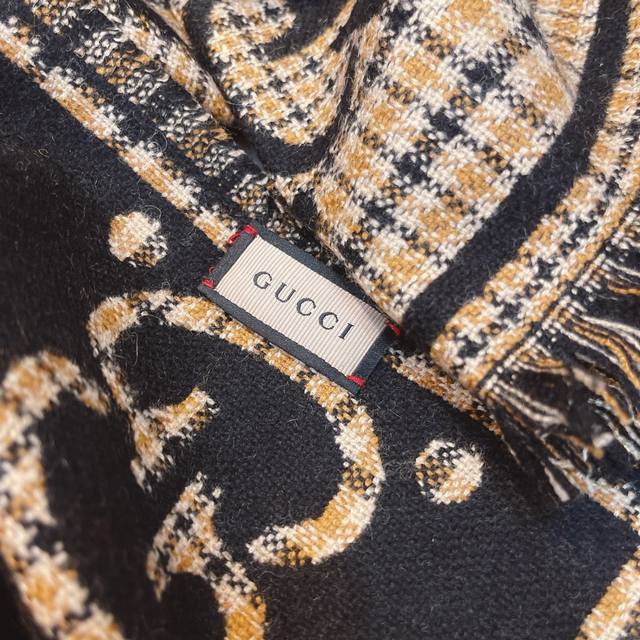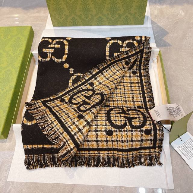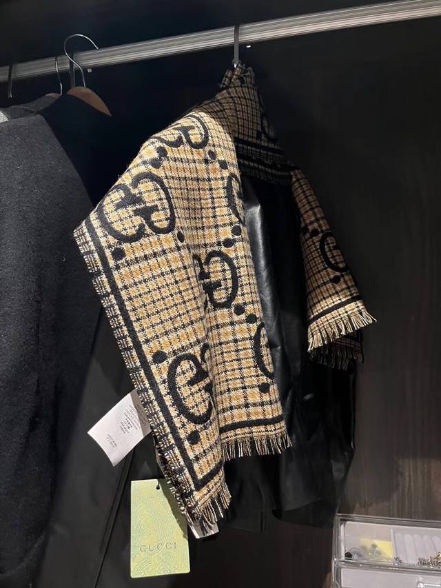 The essence of this Gucci scarf: Under magnification, the double Gs feature hand-knitted jacquard serrated edges! Double-sided jacquard is already difficult, but double-cylinder jacquard in wool and silk often requires up to 140 minutes of knitting time for just one scarf! Pair it with your winter wardrobe; the vibrant yet sophisticated color blocking, the overwhelming GG double G logo exuding luxury, and the stunning yet gentle and elegant mocha chestnut double G pattern will make you naturally and effortlessly beautiful.