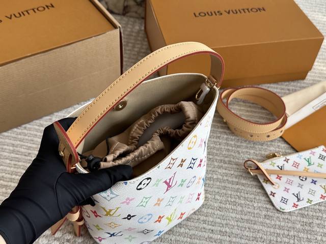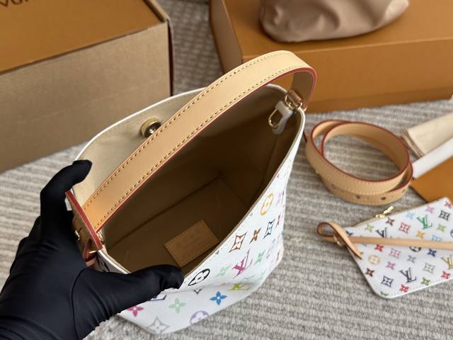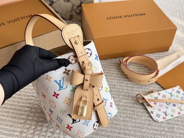 Box included. Size: 18*16cm. All In Bb, a new color is here! Who wouldn't be confused by this? The white tricolor is unexpectedly lovable. It has two faces. L's Aiii In Bb. 25Ss bucket bag.