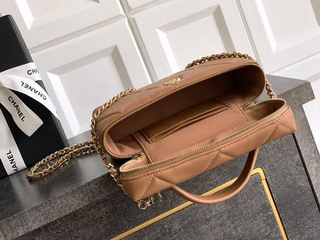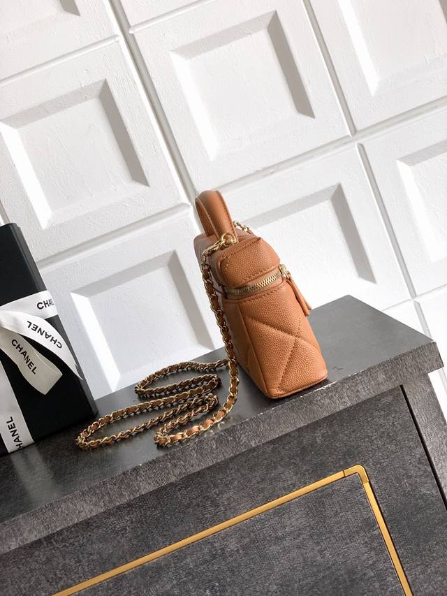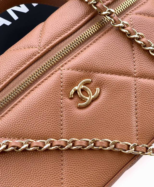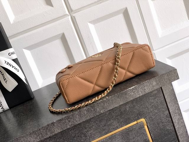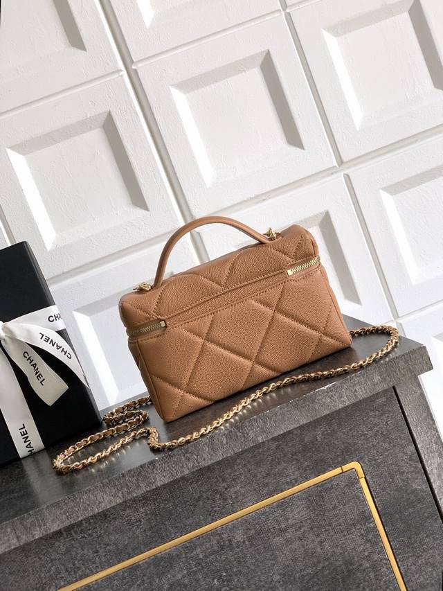 Caramel-colored export product, Ohanel 25K large diamond quilted cowhide LP box bag in black and gold! A new LP box bag with a classic and elegant large diamond quilted design. The double C logo on the front is eye-catching and exquisite. The cowhide material is very durable and easy to use. 17 x 19.5 x 5 cm.