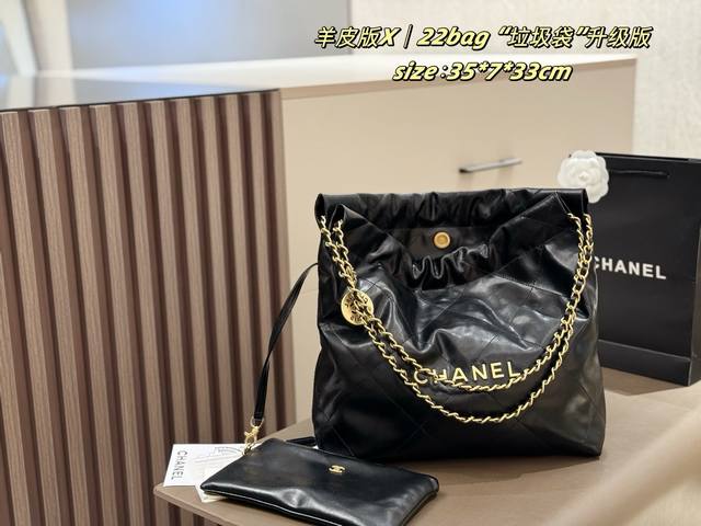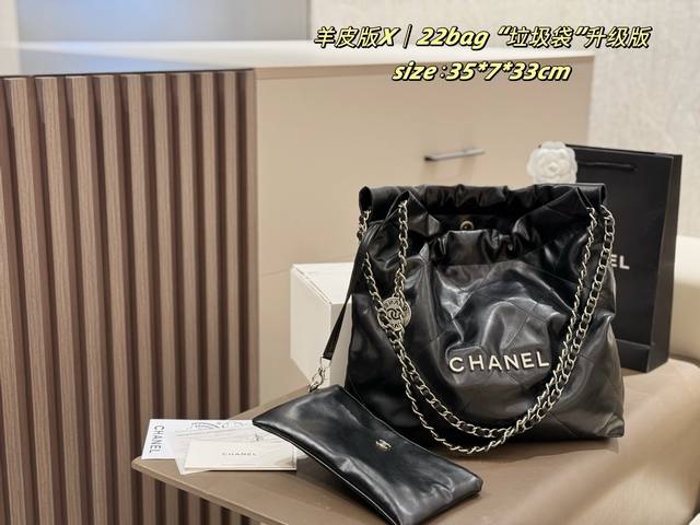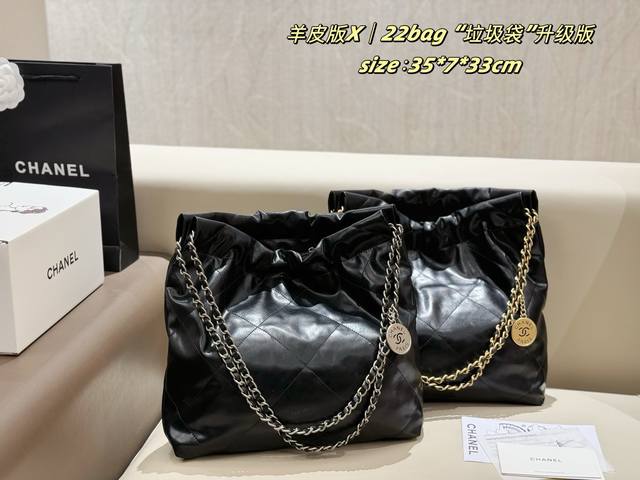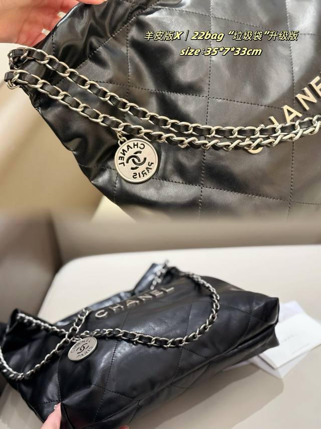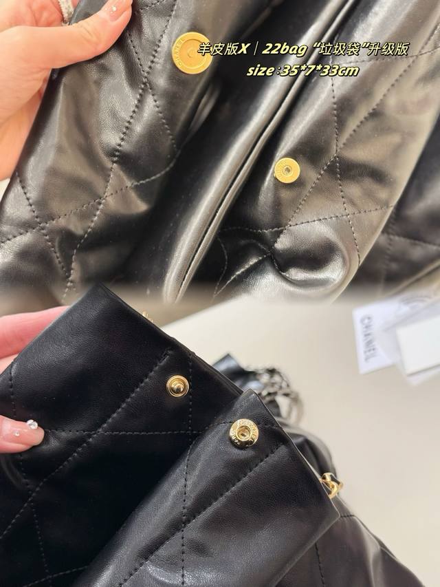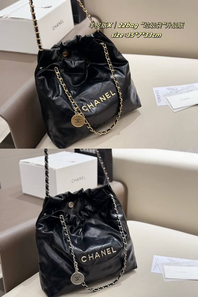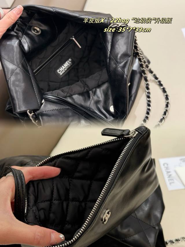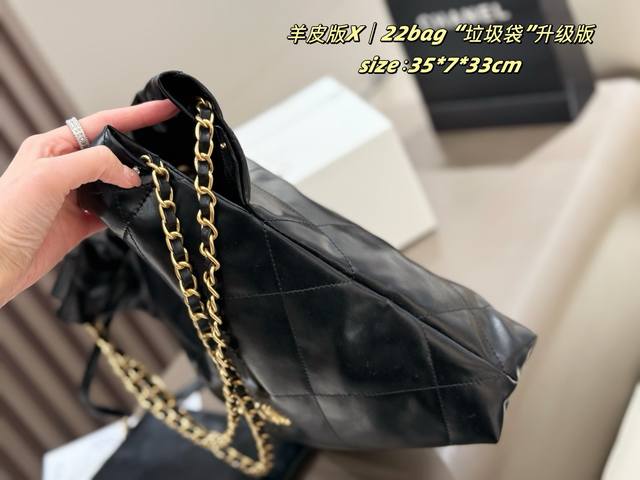 Chanel 22 Bag with Folding Box Chanel 22 is here! The long-awaited "trash bag" is indeed a versatile must-have! Suitable for all seasons and styles. I've shared some seasonal outfit ideas for you! Super durable; compared to other bags of the same size, this one is incredibly practical. The bag itself isn't very heavy; if you put a lot of things in it, the chain can get a little tight on your shoulder. There's a small pocket inside for coins, keys, and other small items. It doesn't weigh you down at all. Dimensions: 35*7*33cm