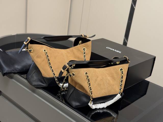 Chanel 25A Vertical Suede Tote Bag (with box) A super stylish suede tote bag from the workshop. The Maillard color scheme is very versatile! Can be carried by hand or under the arm. It emphasizes a relaxed feel! Inspired by Coco Chanel's ebony lacquered screen, it's cool and effortlessly chic. I love the Maillard style! It looks sophisticated whether paired with a T-shirt or a fall/winter coat. A must-have! Size: Horizontal 28.20cm 34.25cm