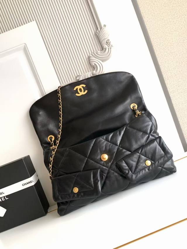 Chanel 25K Fall/Winter Limited Edition Shopping Bag - Exuding Luxury! As5727 I'm absolutely smitten! The lambskin leather paired with gold-tone metal double pockets and a vintage chain pendant adds a touch of modern style. The classic quilted design is both retro and sophisticated, while the gold double C logo on the large flap exudes elegance. It's both classic and fresh, with soft, smooth leather that's luxurious and elegant. It's also very practical, with a large capacity, and looks amazing when worn. Dimensions: 26.5