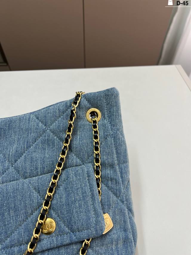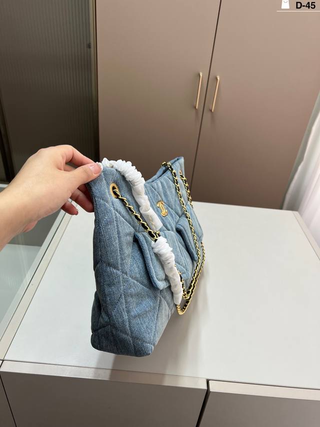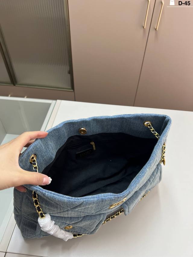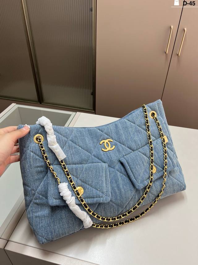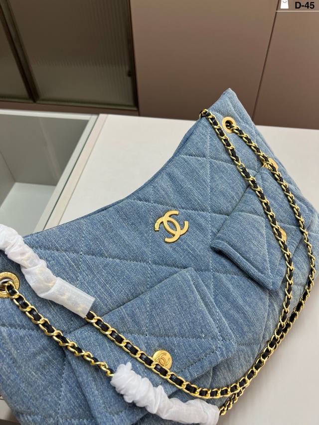 / Chanel 25K Hobo Denim Tote Chain Bag. Classic large diamond quilting and chain