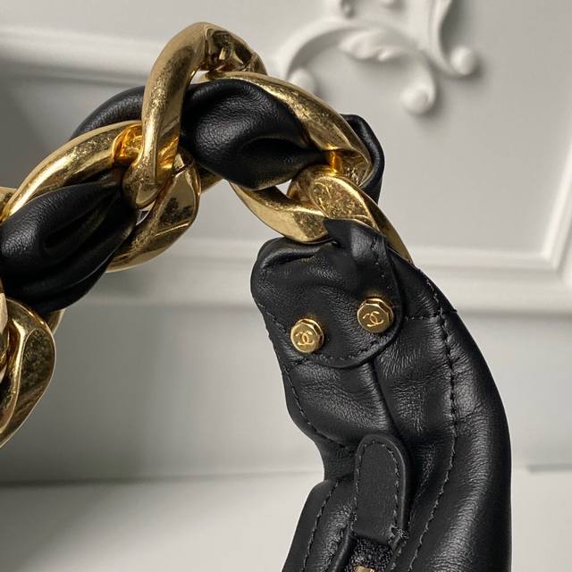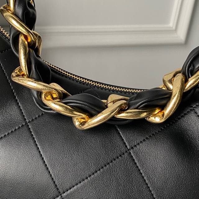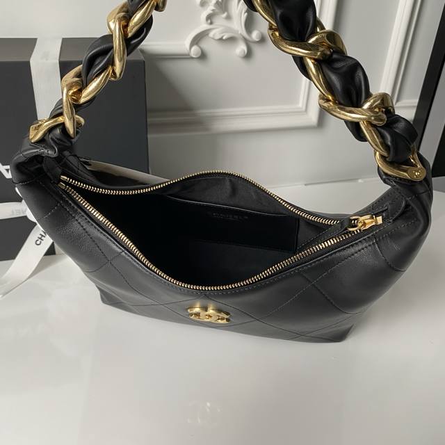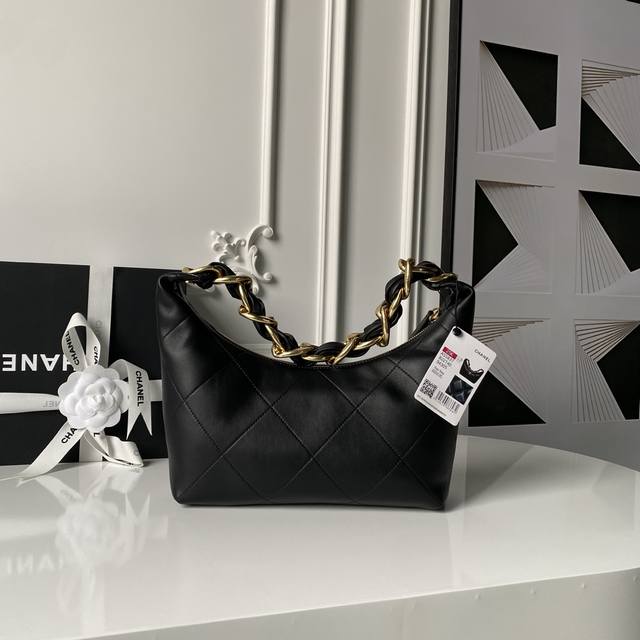 Chanel 25K Hobo Hippie Bag - A must-have for autumn and winter, exuding sophistication. Made of calfskin with vintage metal accents and the classic double-C logo. The wide leather strap with chain detailing is both retro and stylish. The enlarged quilted pattern and simple shape add personality and elegance. Perfect for everyday wear and casual looks, instantly elevating your style. It has a very large capacity and is absolutely irresistible. Dimensions: 24