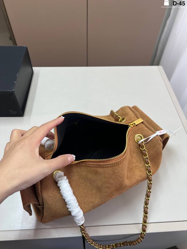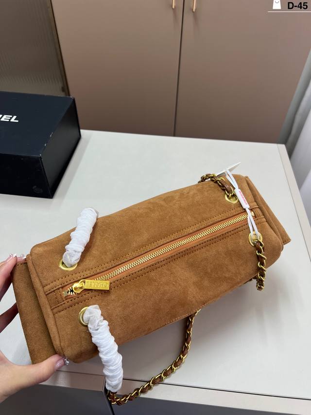 Chanel 25K is so beautiful! The suede motorcycle bag/bowling style is timeless, versatile and sophisticated, with a vibrant chain detail. So youthful and playful!