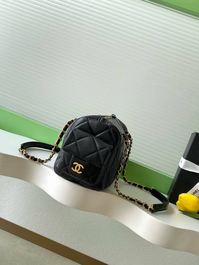 Chanel 25K lambskin bowling bag. The pebbled leather bowling bag with brushed hardware exudes a vintage feel. Two small side pockets add a touch of design flair. The interior is incredibly spacious; it's a practical choice for autumn and winter. Style number As5792. Dimensions: 15.5-24-11.5 mm. Comes with packaging.