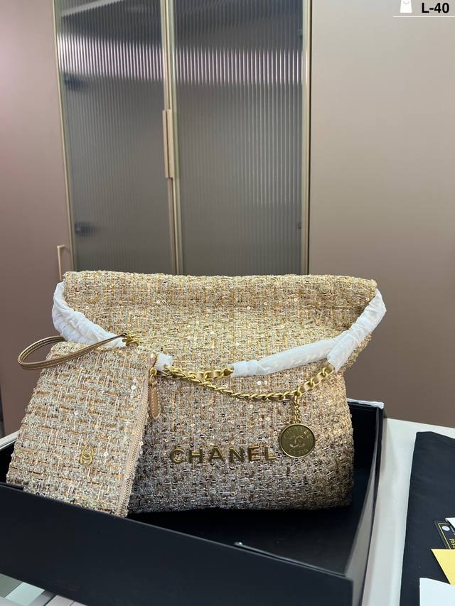 Chanel gold coin wool trash bag