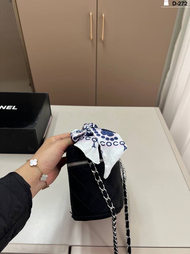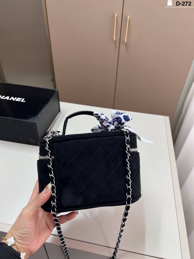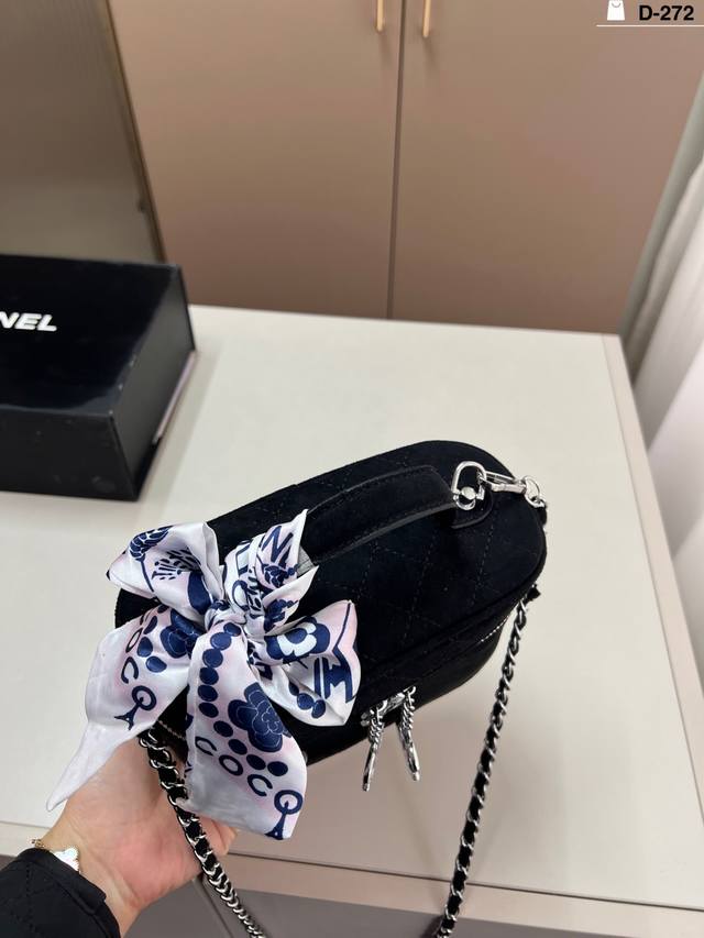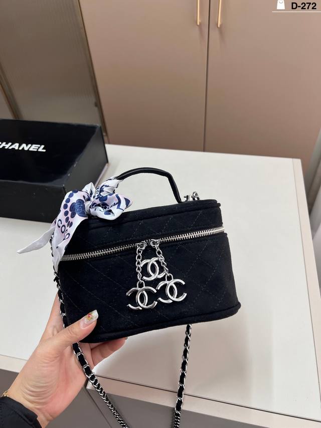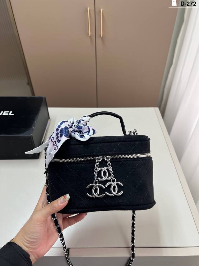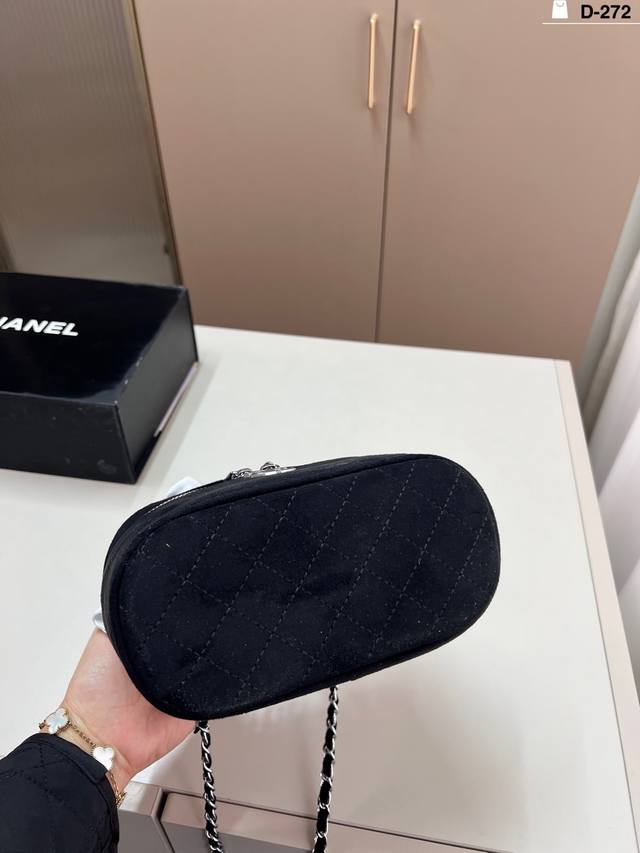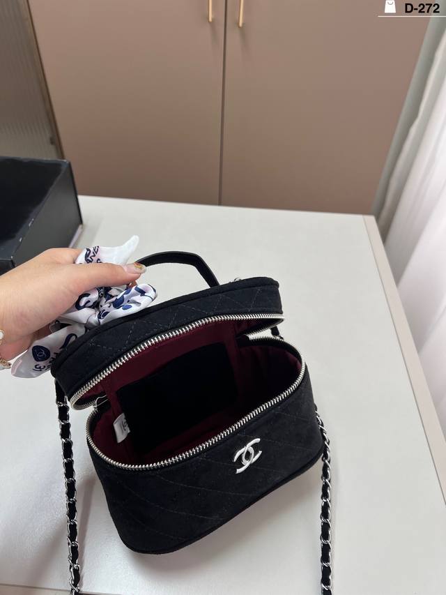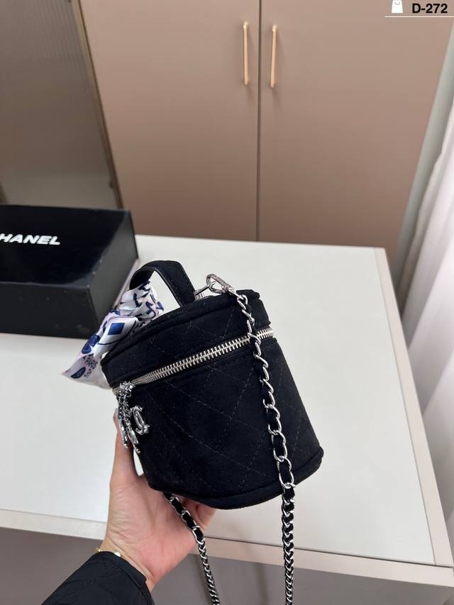 Chanel suede handbag/makeup box. The classic quilted pattern has an inexplicable sense of sophistication. The round, chubby handle is so cute! Size D-272 (20