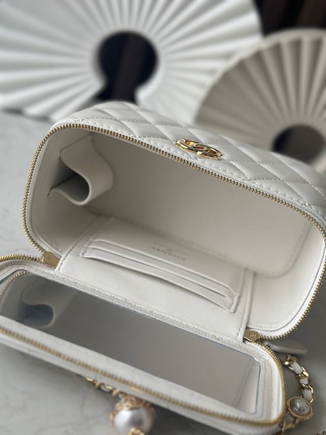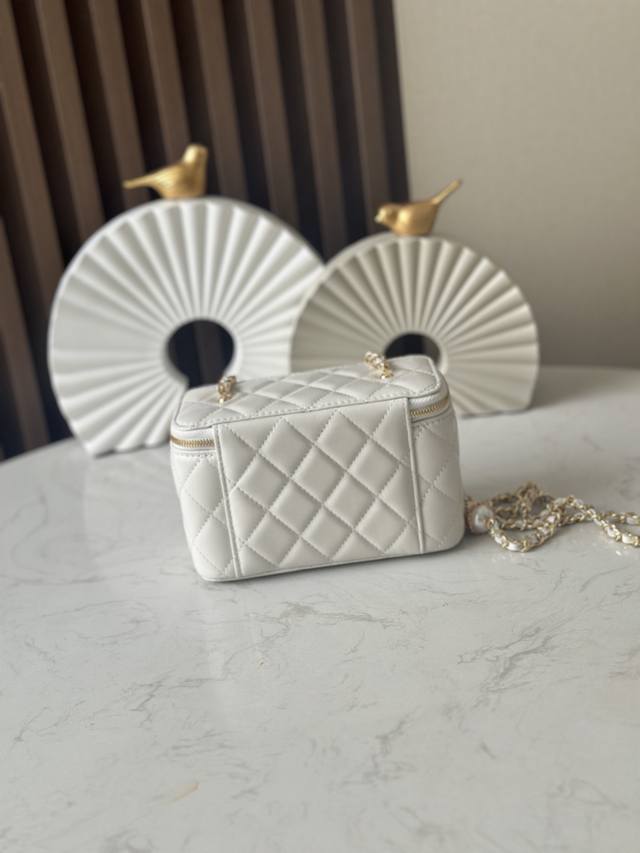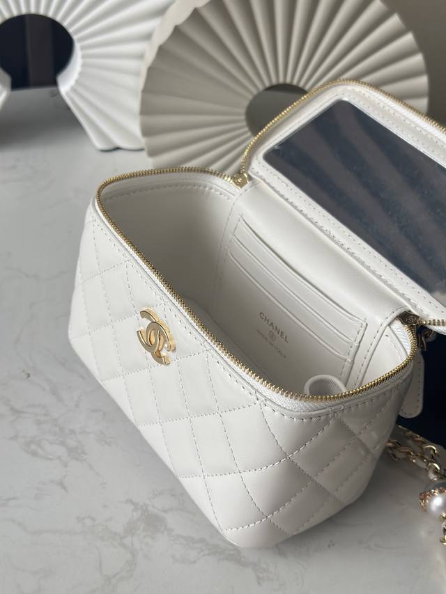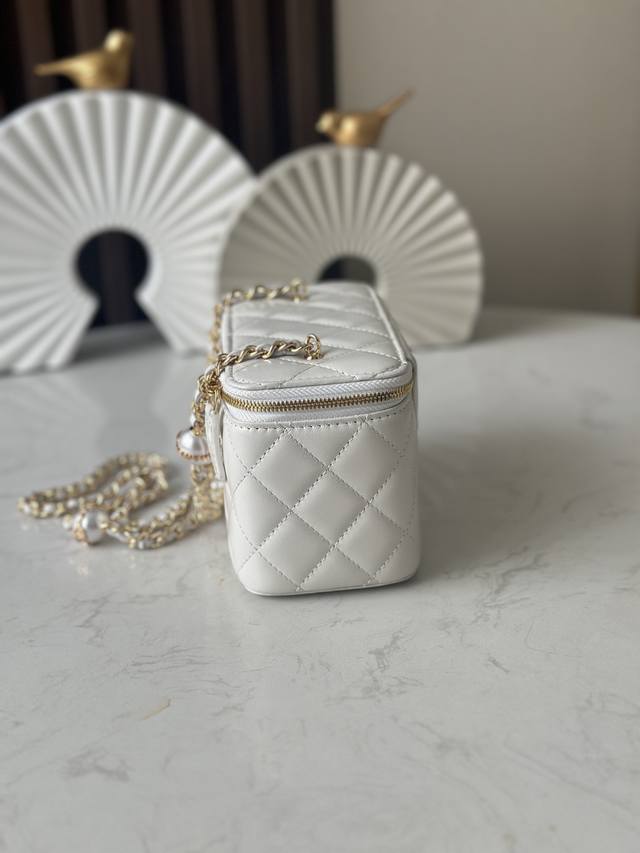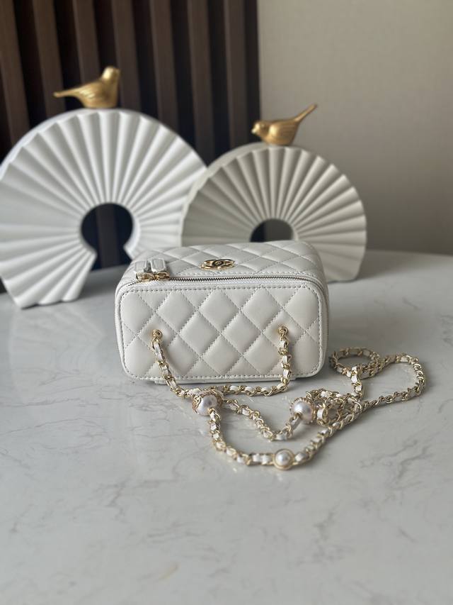 Chip version Chanel 1 24K chain with pearl cosmetic bag. Super luxurious! Made of high-quality lambskin with a superb sheen and feel. Even more attractive is the chain with pearl lettering