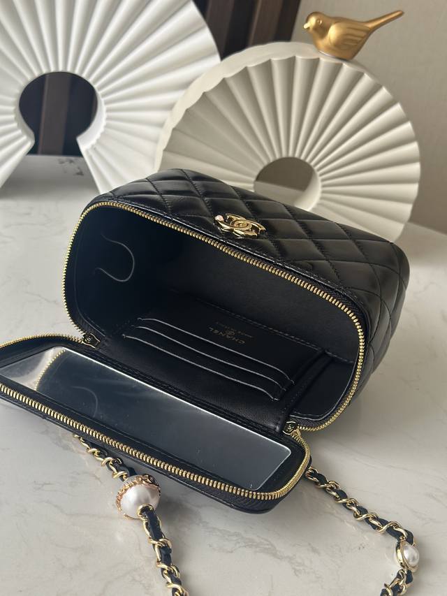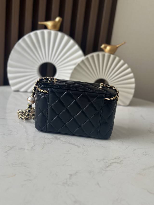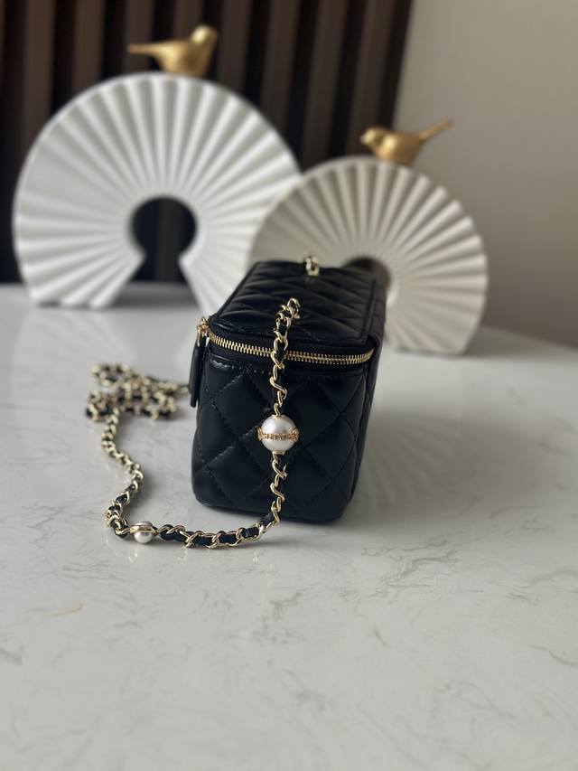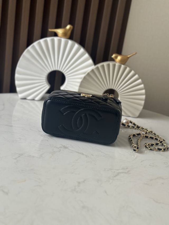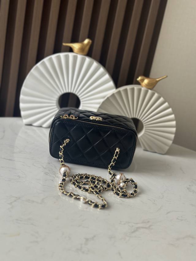 Chip version Chanel 1 24K chain with pearl cosmetic bag. Super luxurious! Made of high-quality lambskin with a superb sheen and feel. Even more attractive is the chain with pearl lettering