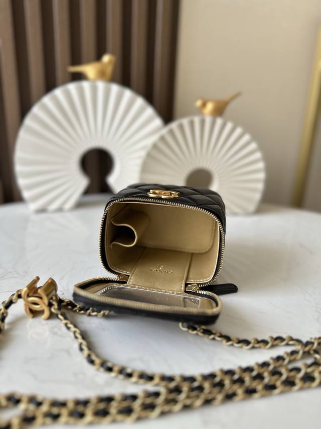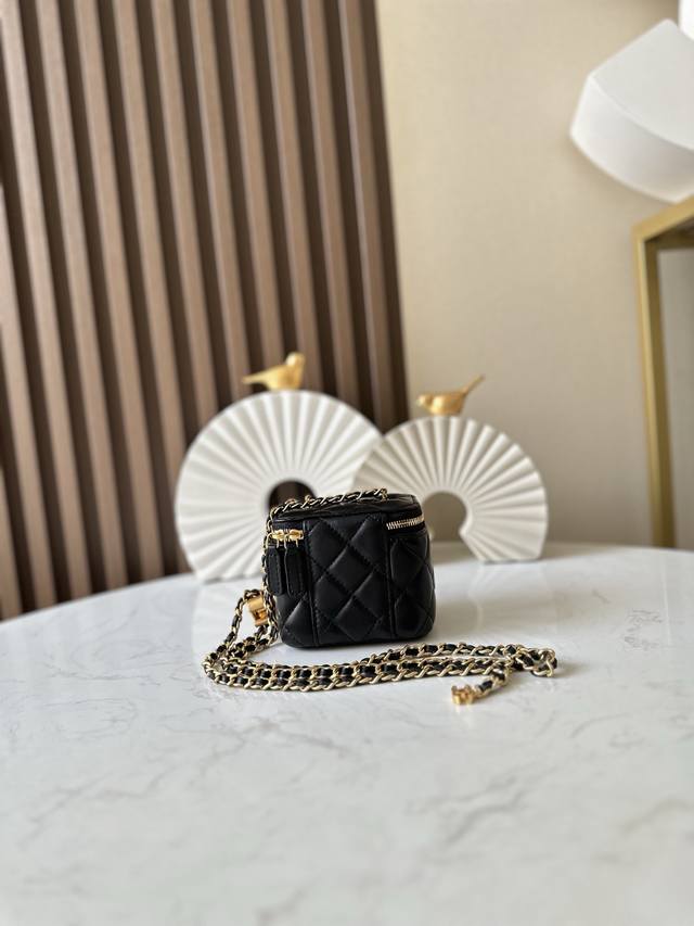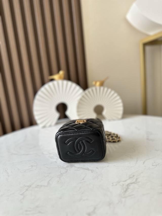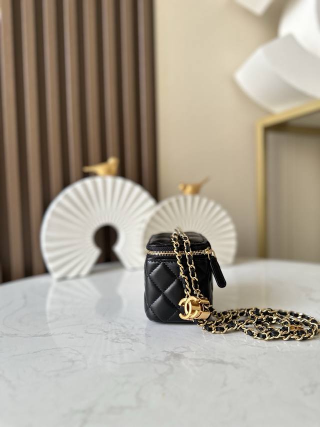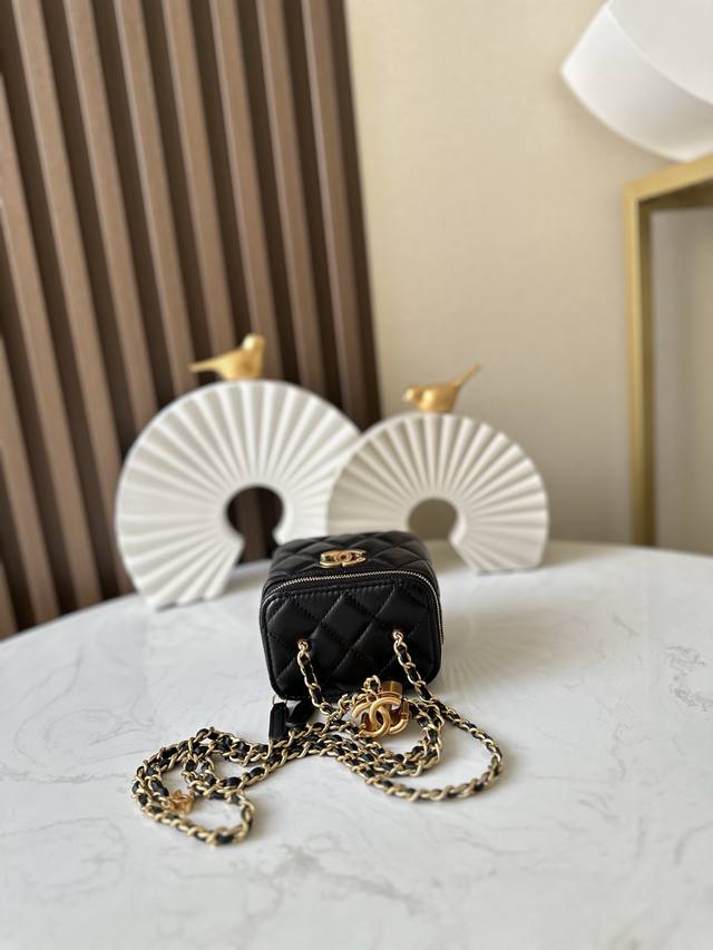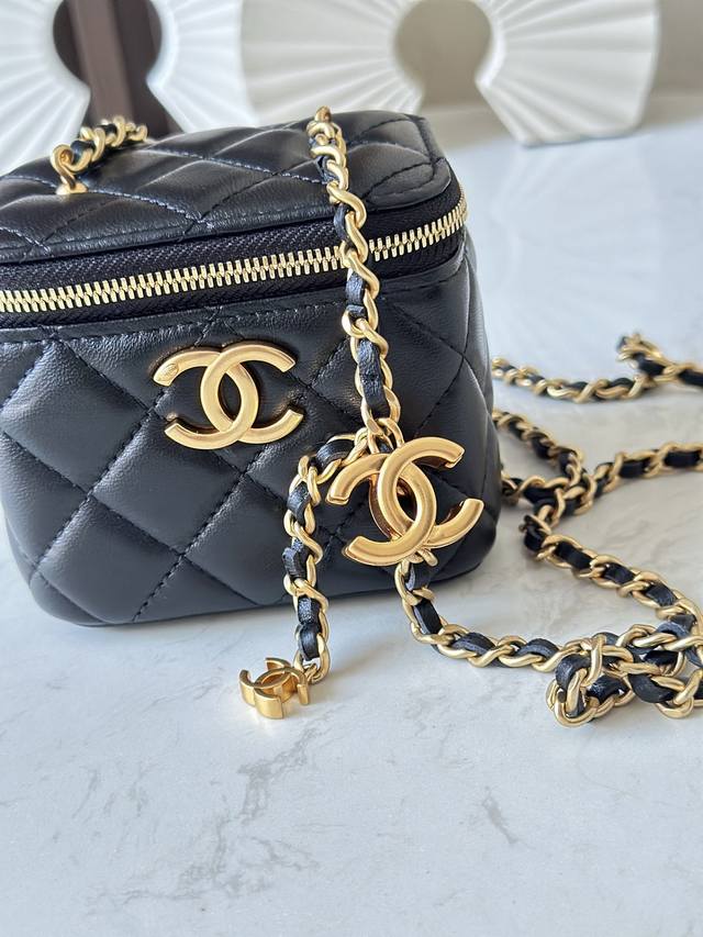 Chip version latest 25B new classic double C buckle adjustable chain like a gold ball + pendant cosmetic box sheepskin embroidered grid shoulder crossbody cosmetic bag, Ohanel 25B new long cosmetic box double C buckle adjustable length + pendant chain imported sheepskin