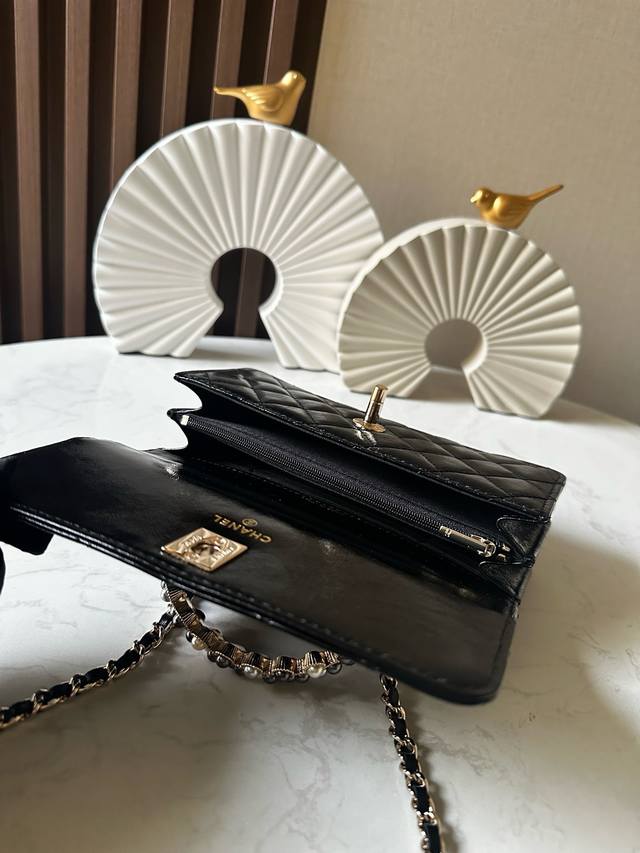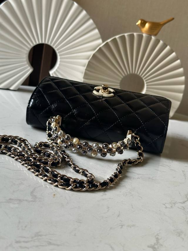 Chip version Newchane1 24P Pearl Handle Woc Black, purchased for 46,960 RMB. A must-have in the 24P series. A new Aew small tote Woc, classic shape with exquisitely inlaid two-tone pearl handle. The lambskin is beautiful and exudes an elegant and sophisticated feel. The interior features multiple zippered pockets and card slots. The capacity is also very generous.