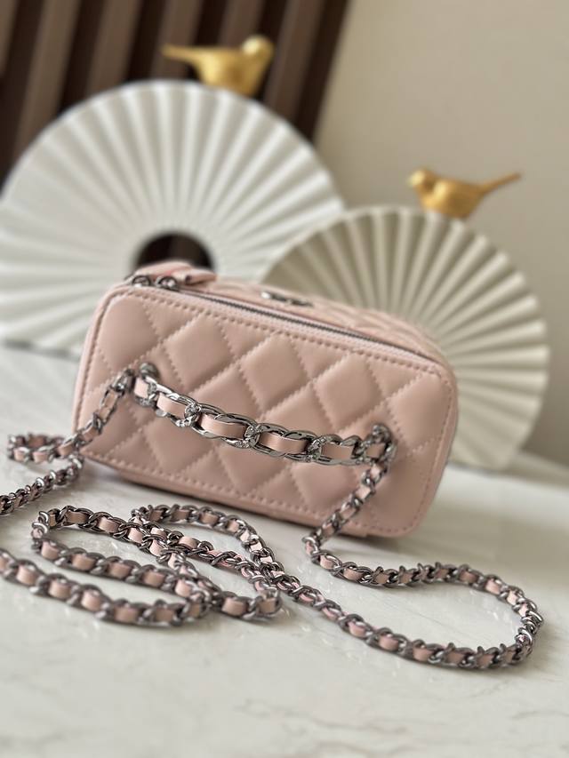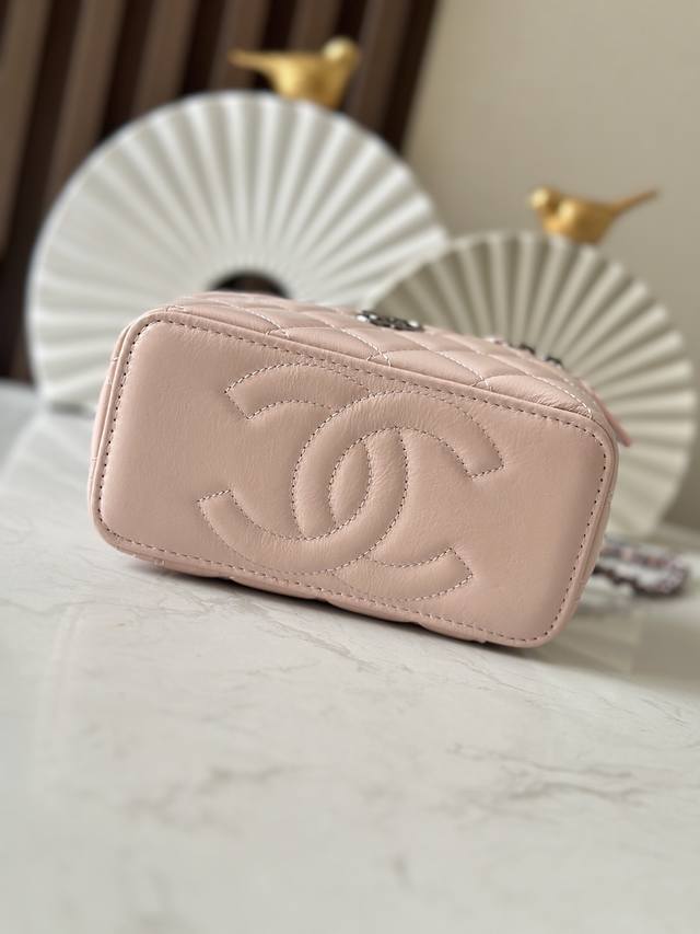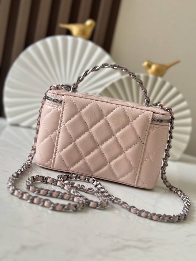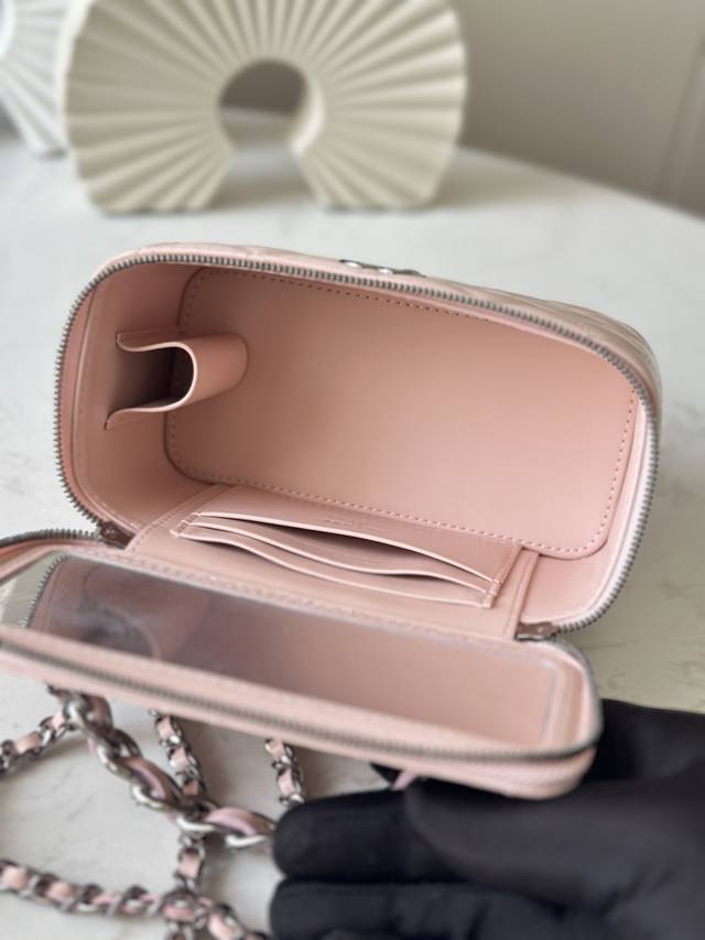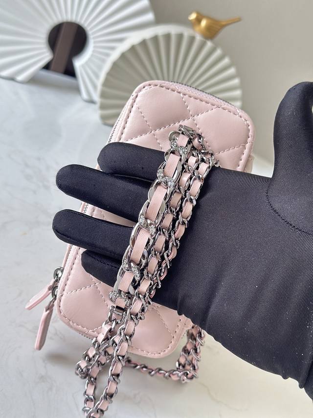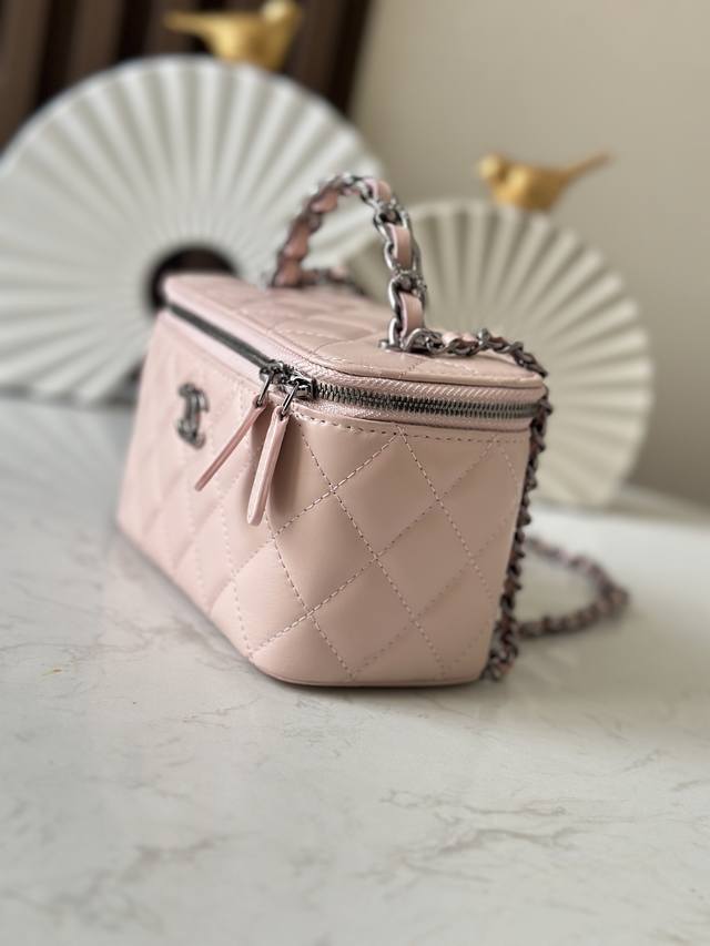 Chip version Ohanel23K New product Liaoning rhinestone handle long box with built-in small mirror, cosmetic box, cowhide leather. Item number: 66056 Pink. Size: 17X9.5X8Cm.