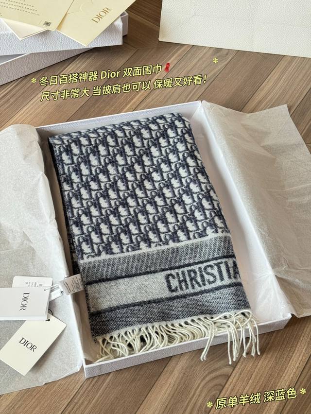 . Made of 100% cashmere, this Dior Oblique print cashmere scarf is incredibly soft, delicate, and exceptionally warm! It features a double-sided design: one side boasts the classic Oblique monogram, while the other is a solid color, adorned with the iconic Christian Dior stripes and tassels