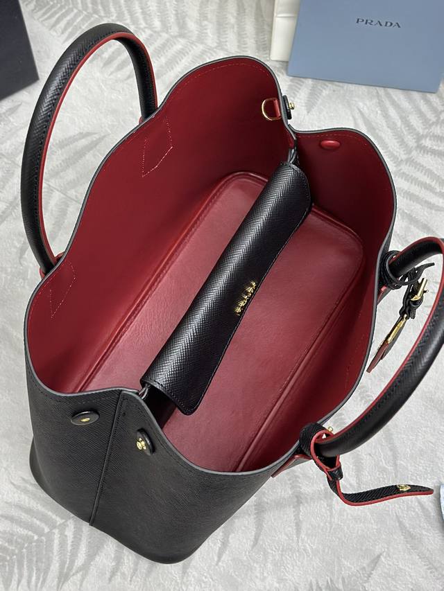 Classic tote bag with red lining, 1Bg775 black, large size 33cm, arrived! Fully upgraded, made with imported coarse cross-grain cowhide + contrasting calfskin lining, top-grade brushed hardware, matching handles, a timeless shopping bag [playful][playful][playful], stylish and elegant. Length 33cm x Height 24.5cm x Base 14cm. This size is large and does not include packaging.
