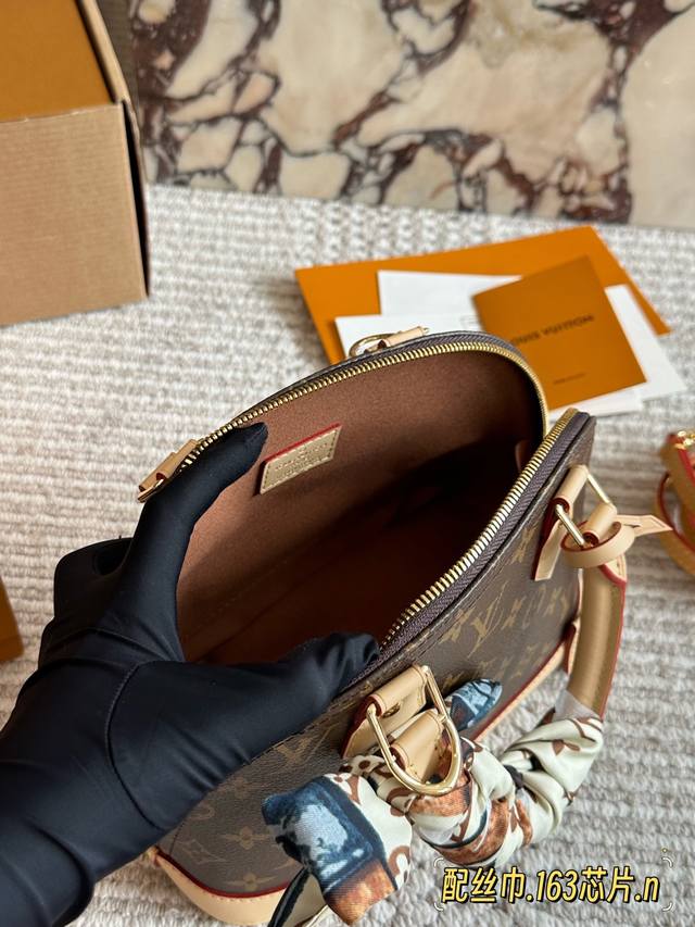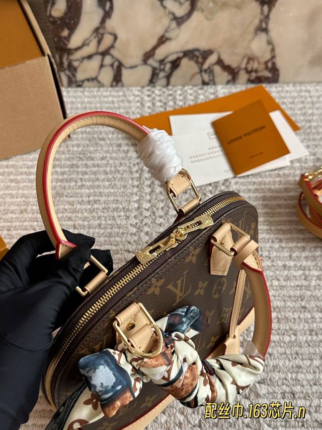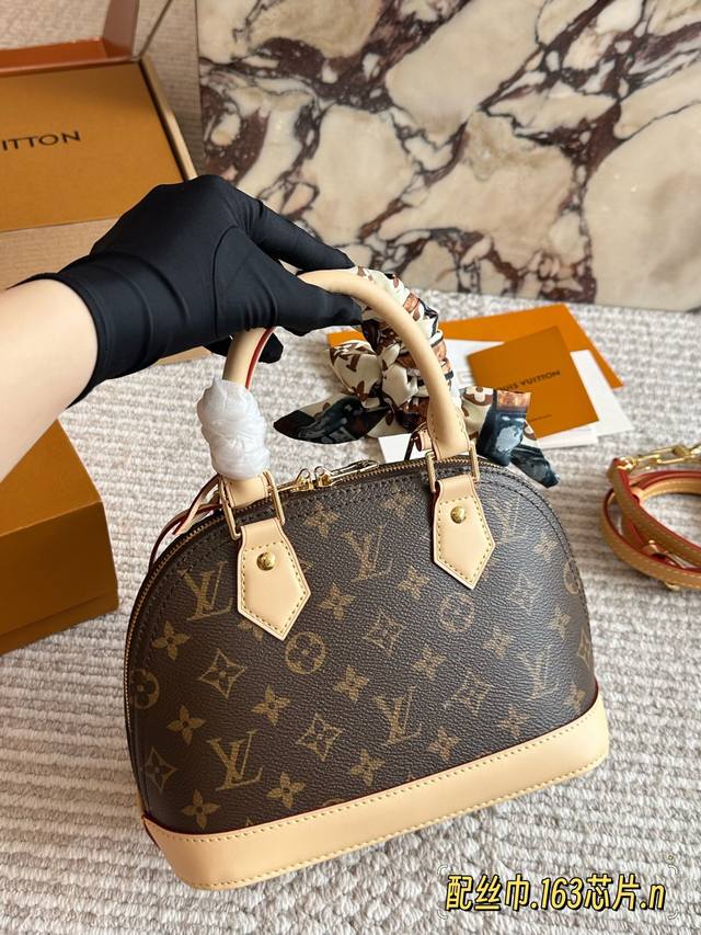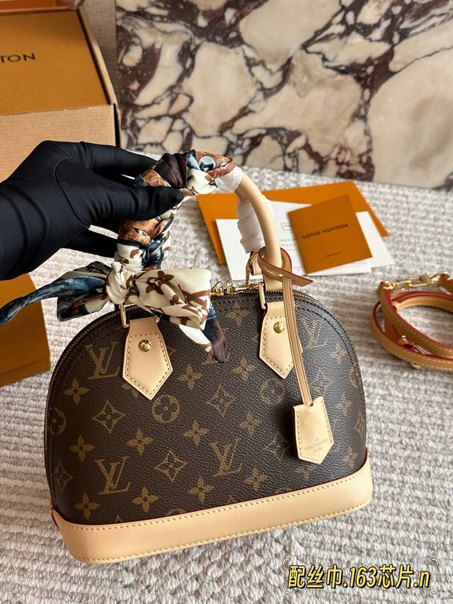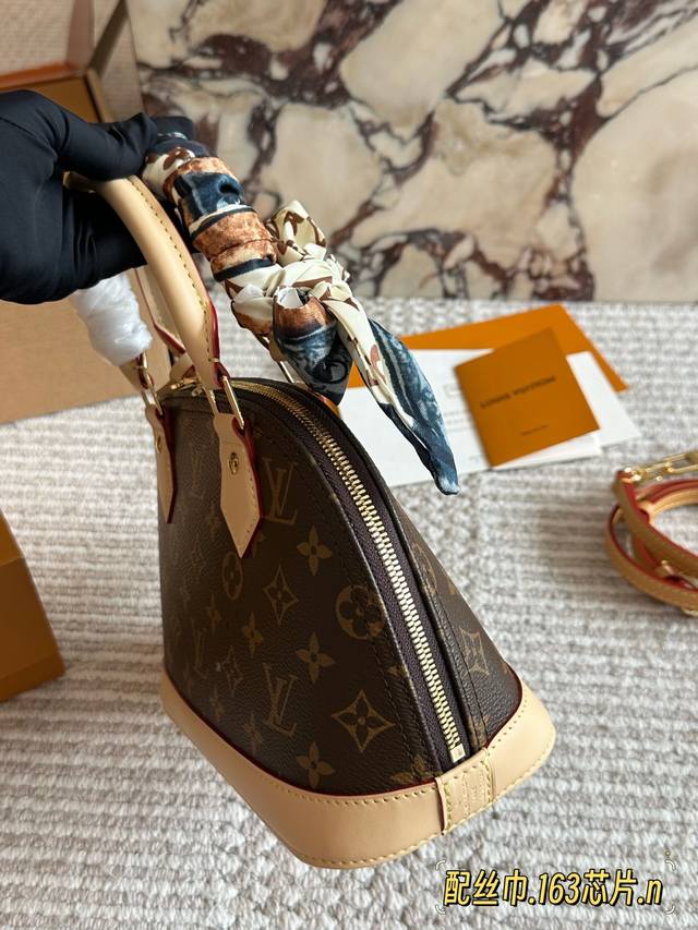Color-changing leather bag with box, chip version with scarf. Size: 25*18cm. Large Louis Vuitton Alma shell bag. Understated! Deep! Stylish! This versatile classic handbag remains very popular in modern times.