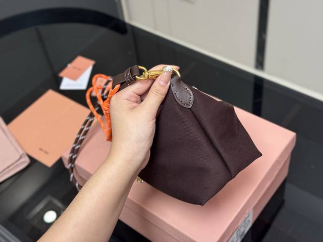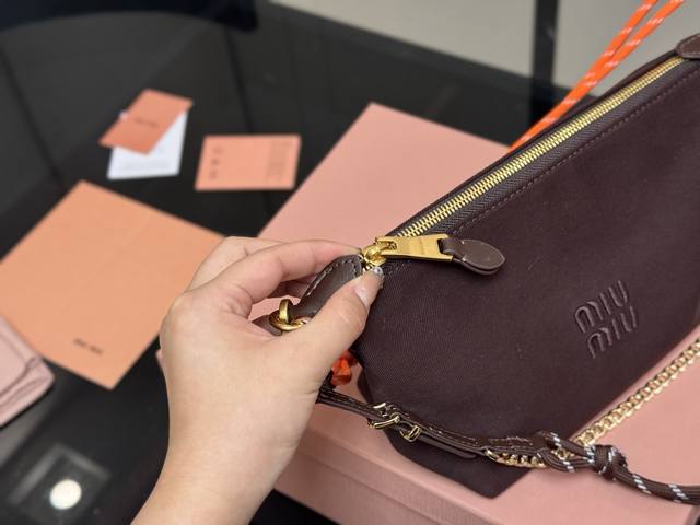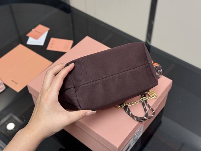 Comes with a box. Size: 18*15cm (bottom width). Miumiu canvas mini lunchbox~ Comes with a built-in surf rope!! Miumiu's latest lunchbox bag. The king of value! Early spring new arrivals! A casual and versatile lunchbox bag is here again! Available in three colors with excellent capacity!