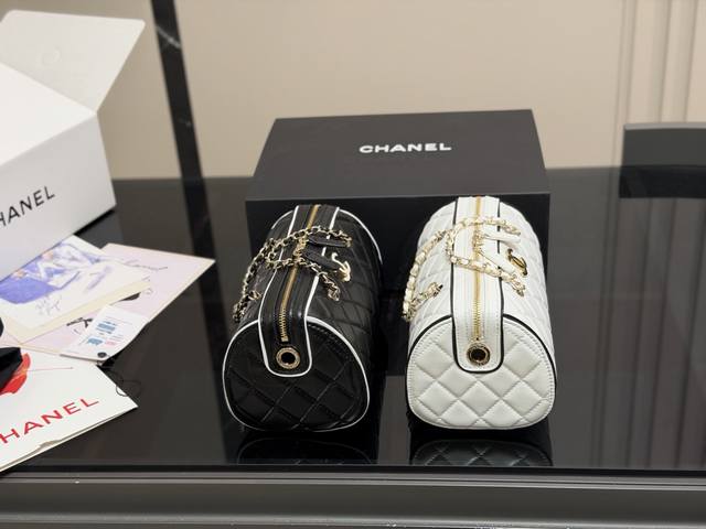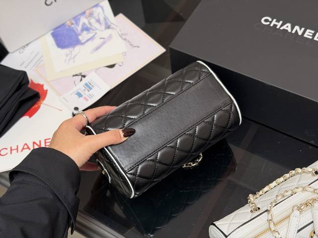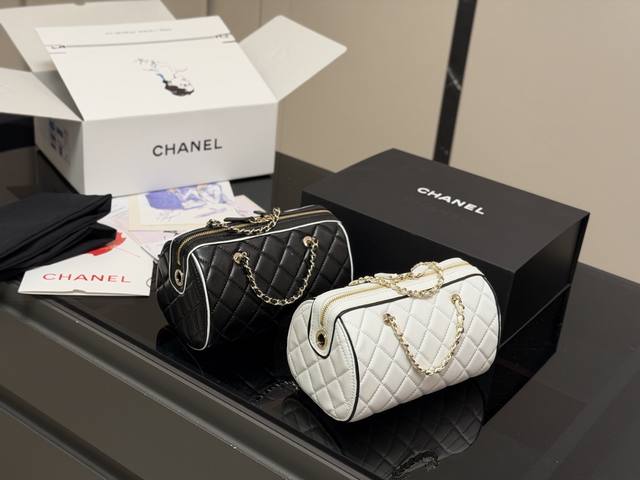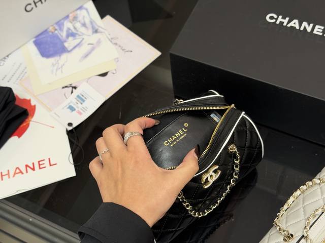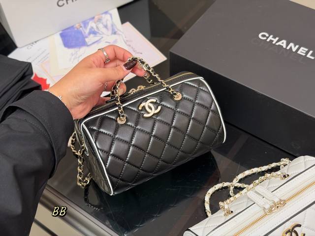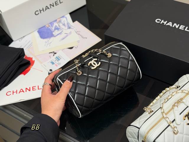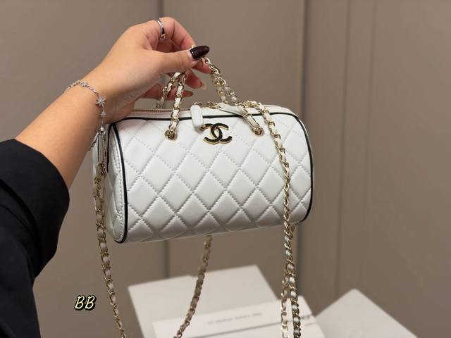Comes with a folding box. Size: 19.11cm. Chanel 25P Bowling Bag. This bowling bag is absolutely gorgeous! A very popular vintage Chanel bowling bag recently. The design is timeless and stylish to carry. High quality!