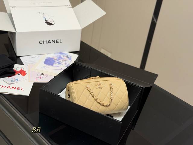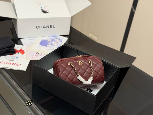 Comes with a folding box. Size: 19.11cm. Chanel 25P Bowling Bag. This bowling bag is absolutely gorgeous! A very popular vintage Chanel bowling bag recently. The design is timeless and stylish to carry. High quality!