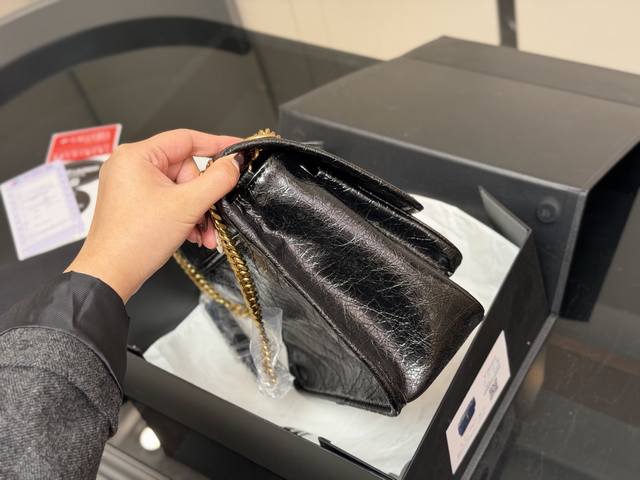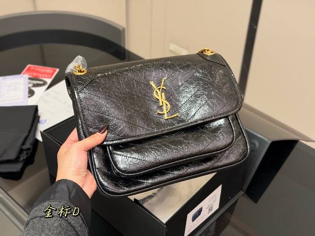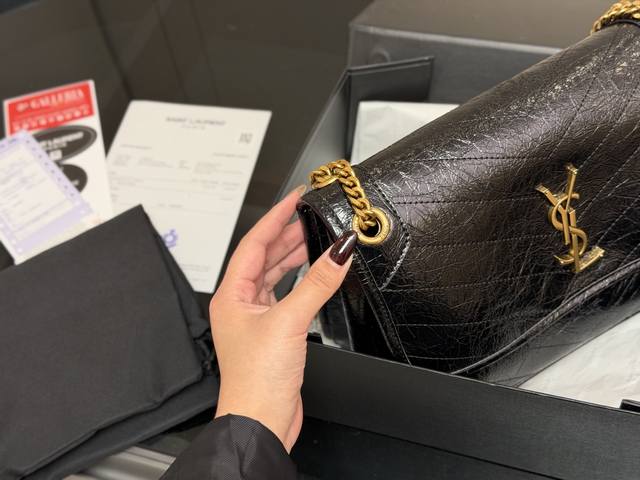 Comes with a folding box. Size: 28cm. High-end Niki leather, YSL Niki brand, soft and supple texture, imported pleated pattern!