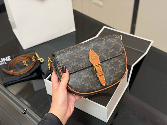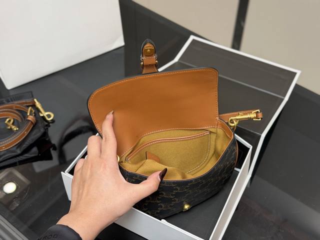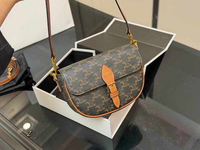 Comes with a folding box. The new Celine saddle bag is here! This new saddle bag is absolutely stunning! It truly lives up to its reputation as a walking encyclopedia of French style; carrying it instantly gives you that effortless, relaxed feeling! The classic Celine saddle silhouette is timeless! The classic saddle bag shape from the Hedi Slimane era is back! Size: 20.14cm