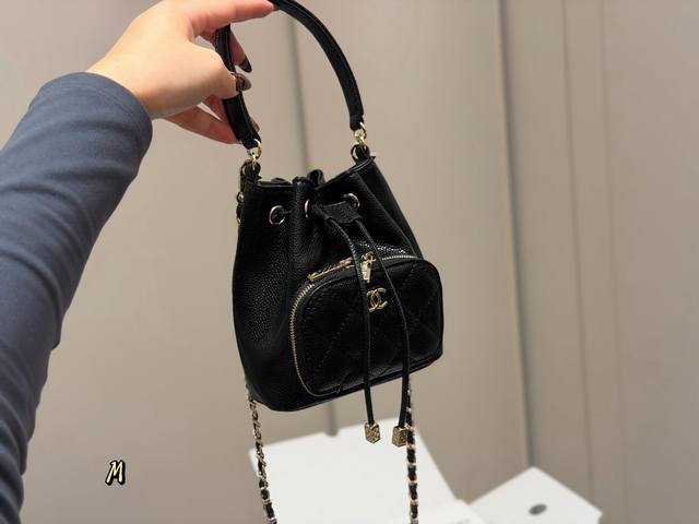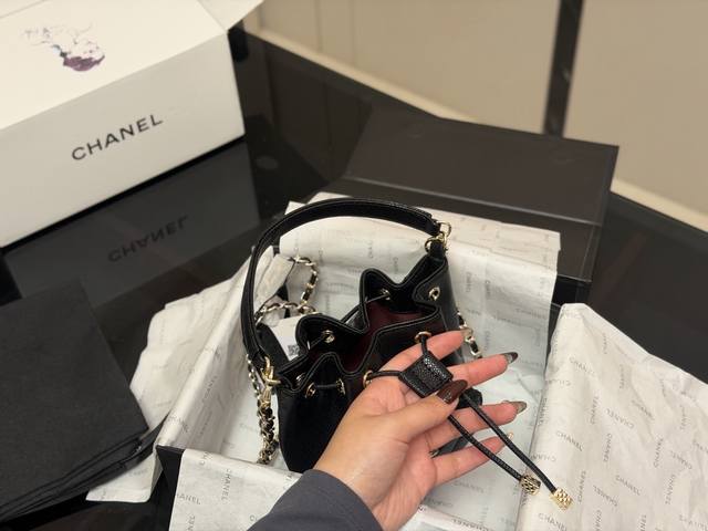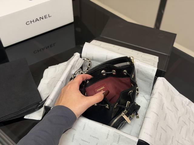 Comes with a folding box/airplane box. Chanel 22B - the cutest mini bucket bag! Just pure cuteness! Such an adorable crossbody bag! A tiny bit of your phone will stick out if you put it in. It can hold other things like powder compacts and key cards. I've got all the Chanel 25 series in one bag! Size: 13.15cm.