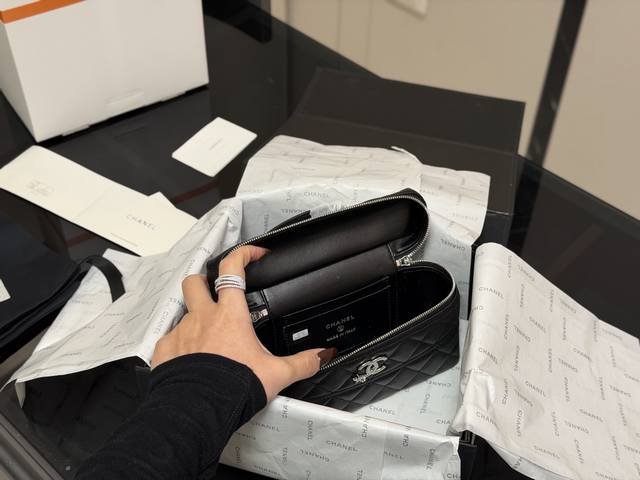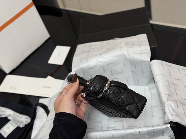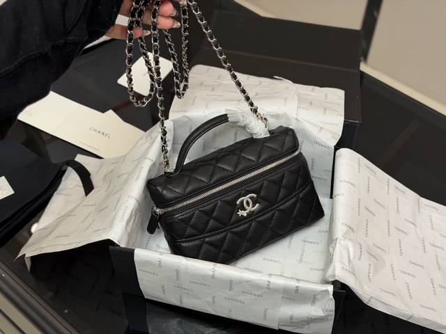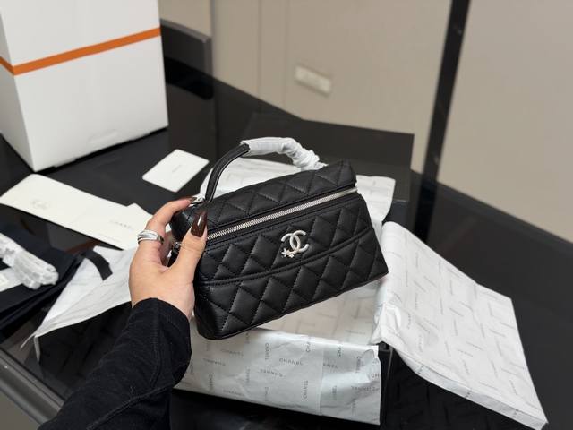 Comes with a folding box/airplane box. Chanel star LP lunchbox bag. The real thing is so beautiful! The large logo and star embellishments make it look so lively! The black and silver combination exudes a high-end feel and is versatile for all seasons. Size: 19.13cm.