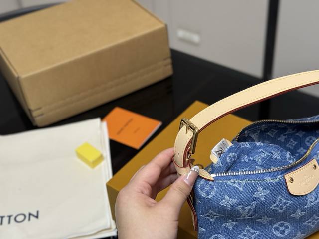 Comes with a folding box/airplane box. Size: 20*11cm. New denim lunchbox bag, keeping up with the trend! So cute! Retro is truly addictive! New LV denim lunchbox bag!