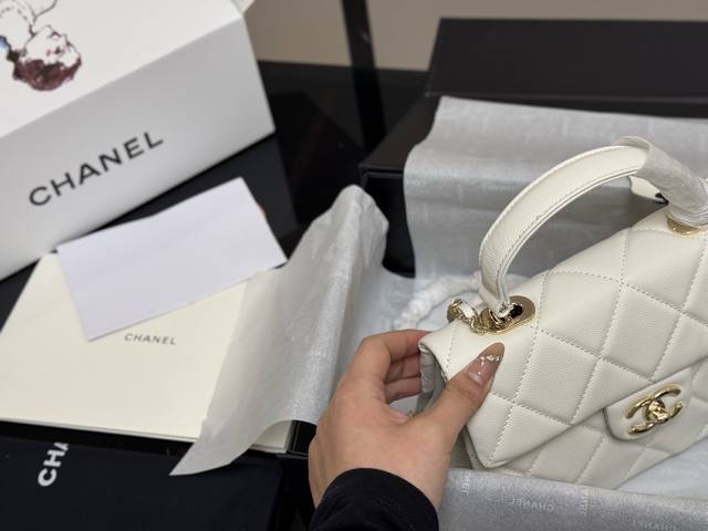 Comes with a folding box/airplane box. Size: 21*15cm. Chanel 24P Kelly vintage handbag. Super retro and modern. The actual product feels great with the pebbled leather. The latest new product from 24Ss!