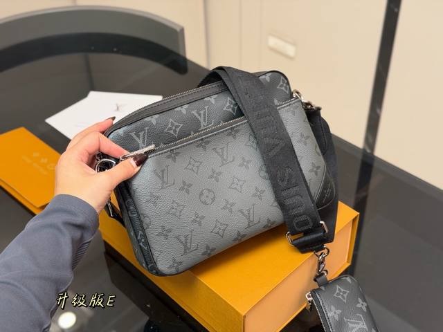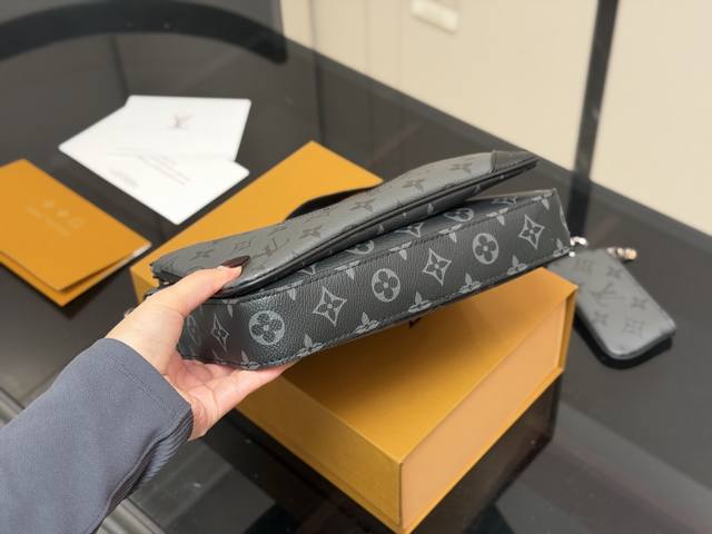 Comes with a folding case. Size: 25*18.5cm*7cm. Men's Lv 3-in-1 bag. Can be worn