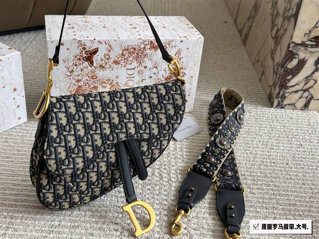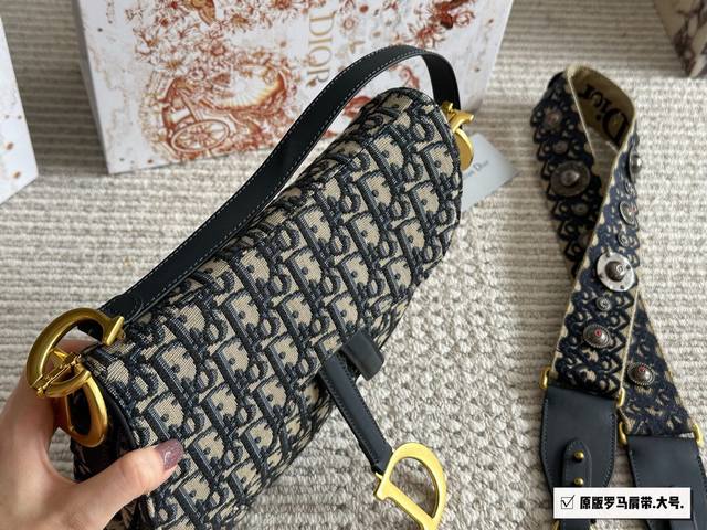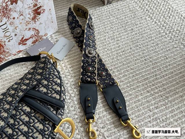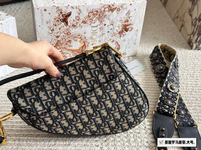 Comes with box and Roman shoulder strap. Size: 25cm*20cm (Large), 18cm*15cm (Small), Upgraded version. Dior monogram saddle bag with dark blue calfskin long shoulder strap. Search Dior.
