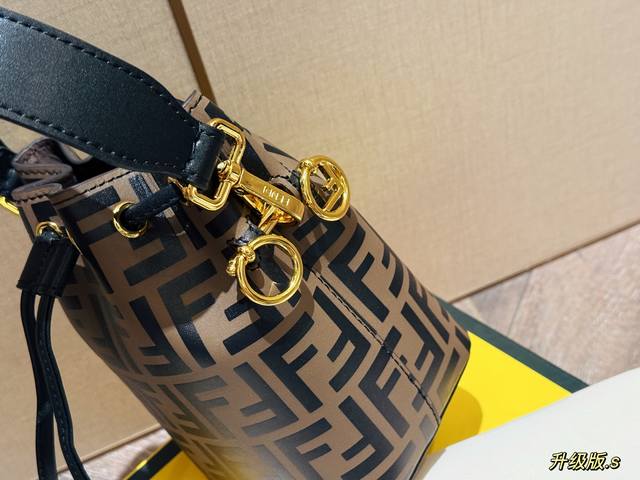 Comes with box, genuine leather. Size: 12.5*18cm. Popular must-have item: Fendi bucket bag. High-quality original details and hardware. Features a long shoulder strap! A versatile Fendi monogram mini bucket bag that goes with everything! Great capacity and stylish design!