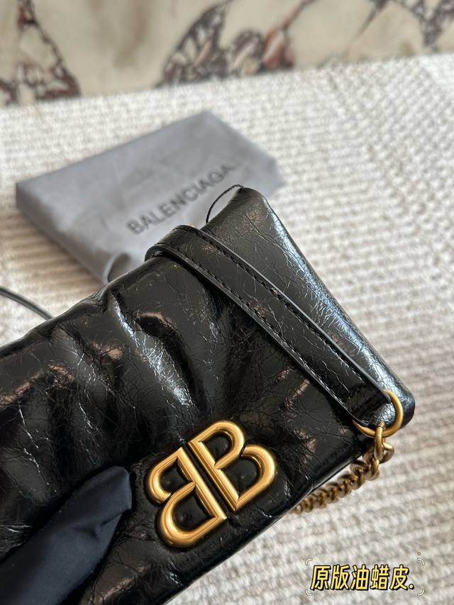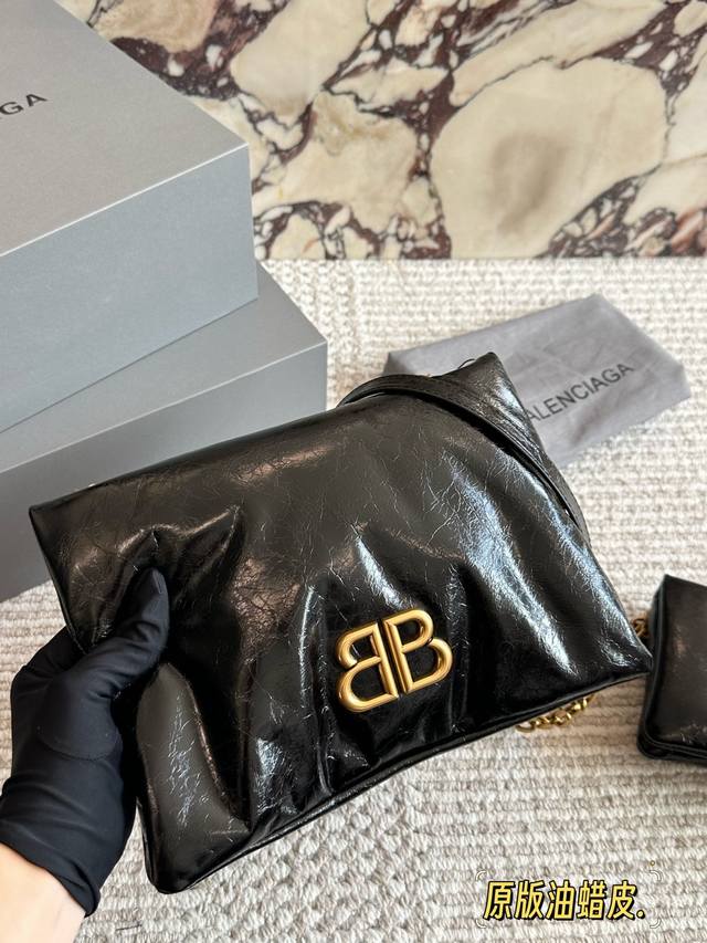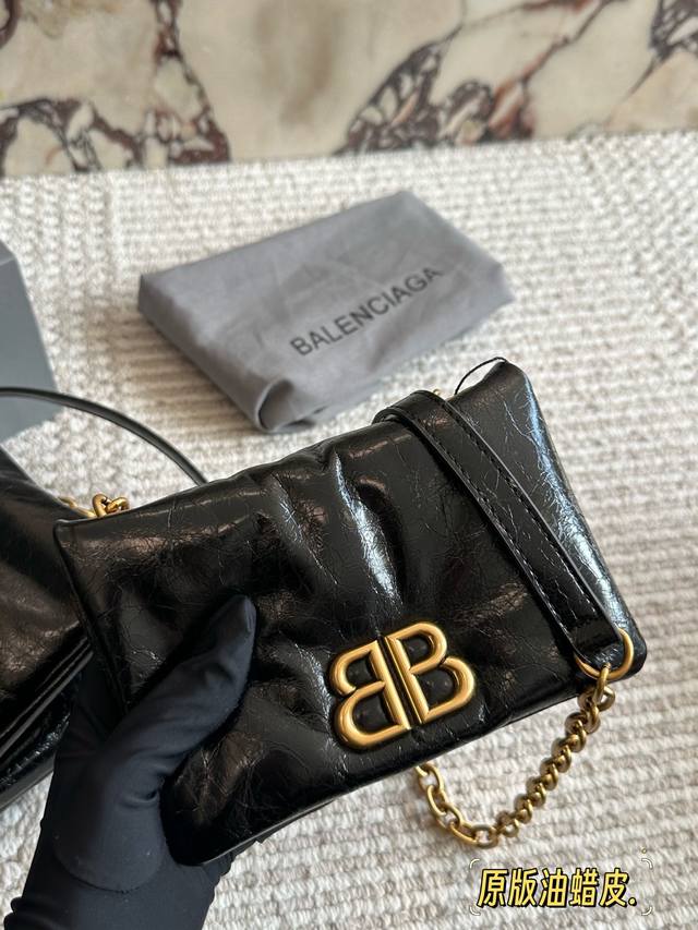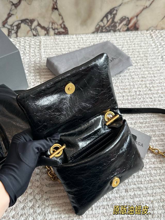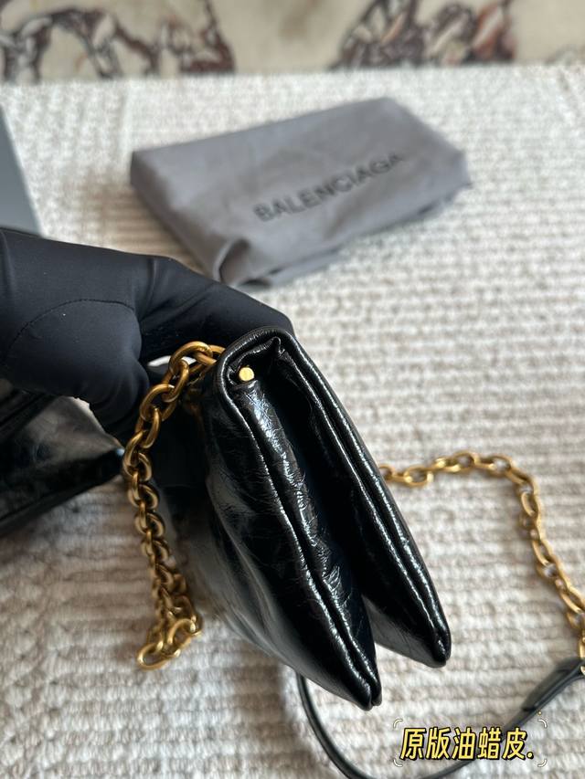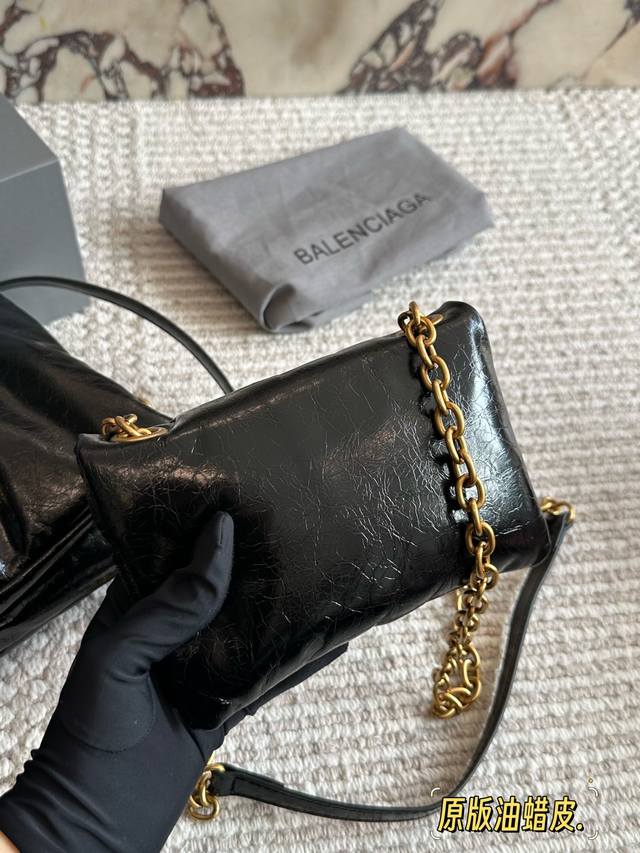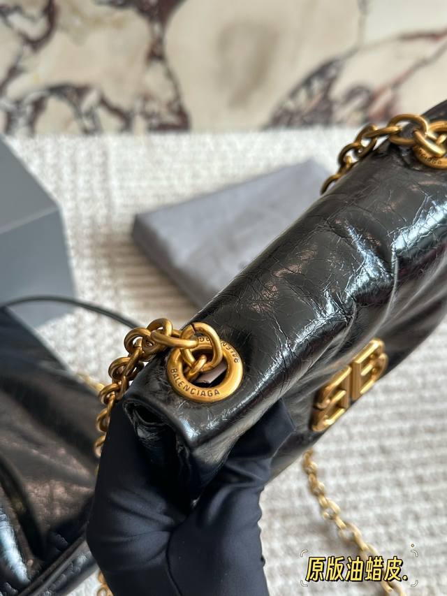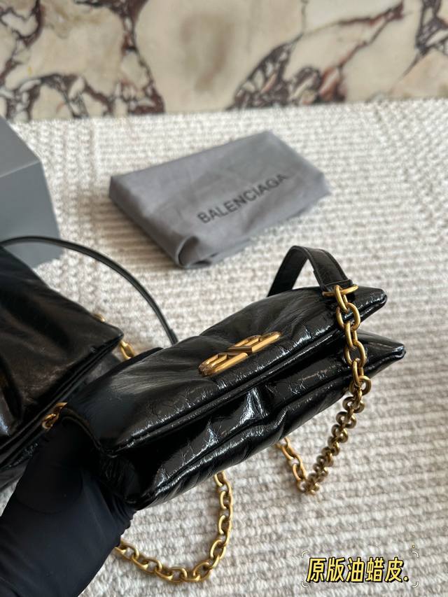 Comes with box. Made of waxed leather. Size: 26 x 20cm ( Original Price: 17 x 12cm). Balenciaga's new chain bag is so beautiful ! It's so high-end! The size is just right, it can hold a lot, it's lightweight, and the adjustable chain gives it a luxurious feel.